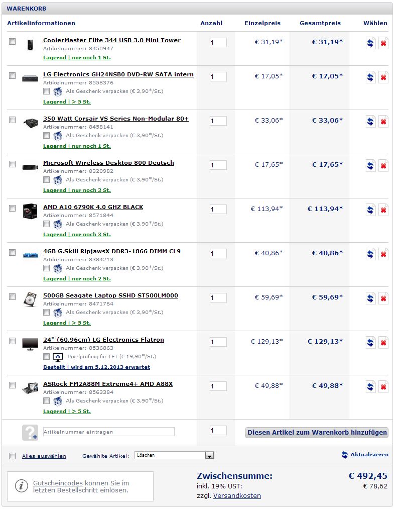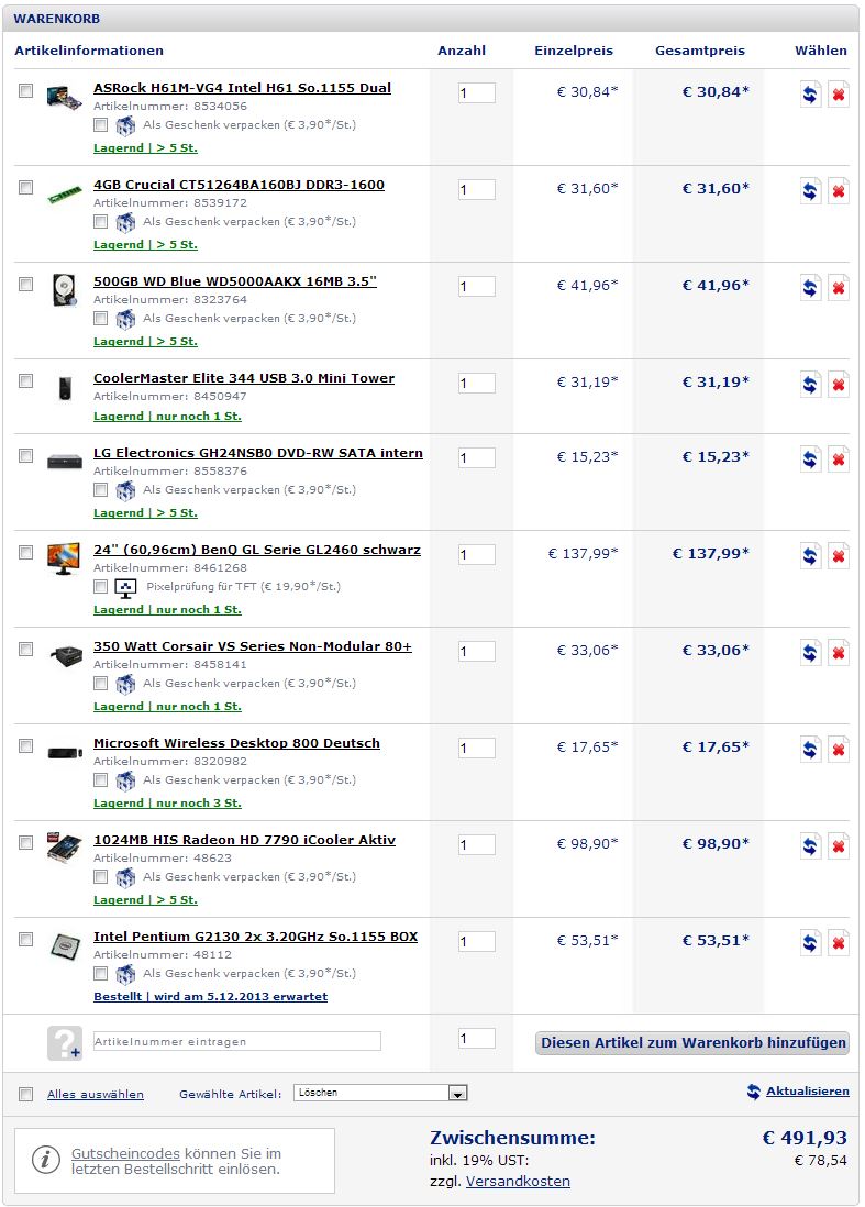 Folgendes soll bei einem Budget von maximal 500€ gekauft werden: