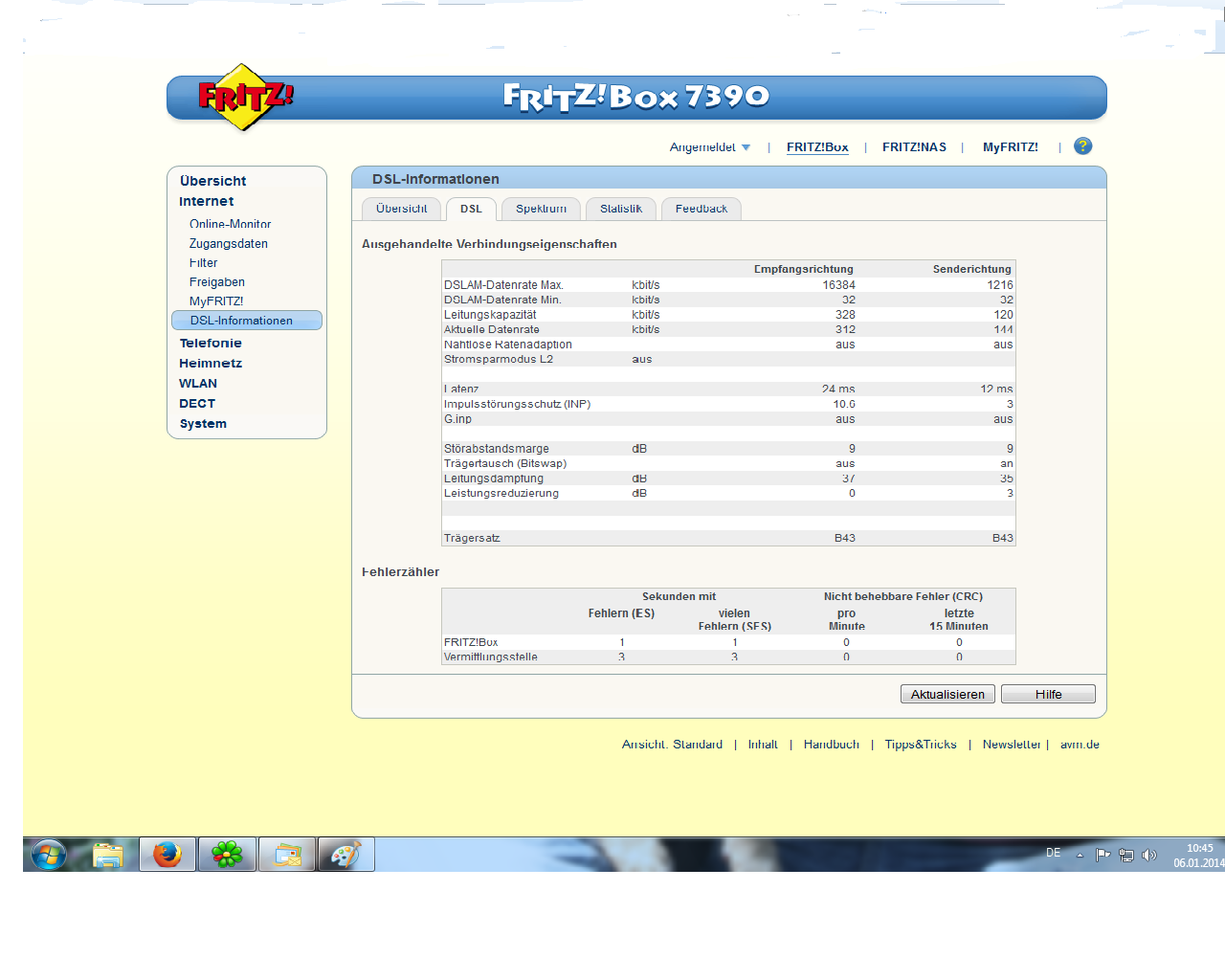 Mein Provider ist Kielnet, der vor kurzem von Verstel aufgekauft wurde. Seit dem Aufkauf ist der Kundenservice sehr mies (wie sie selber auch zugeben). Seit dem 23. Dezember rufe ich regelmäßig bei der Störungshotline an, damit das Problem behoben wird. Als erstes wurde der Port freigeschaltet und die Karte resetet. Dies half auch für eine Stunde (Downloadrate von 6000 KB). Die Leitung scheint also zu stehen. Dann jedoch synchronisierte der Router wieder mit der niedrigen Bandbreite und blieb auf diesem Niveau.