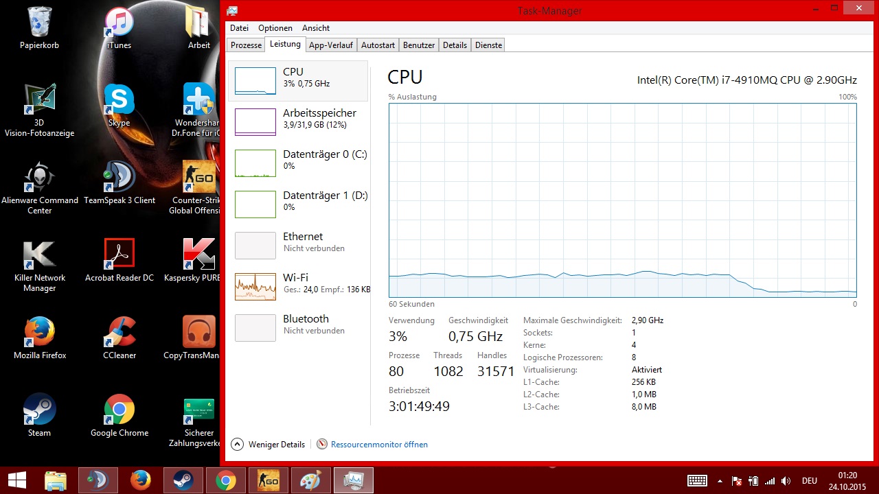 Verbaut ist eine i7 4910mq 2,9Ghz, GTX765m, 32GB Ram