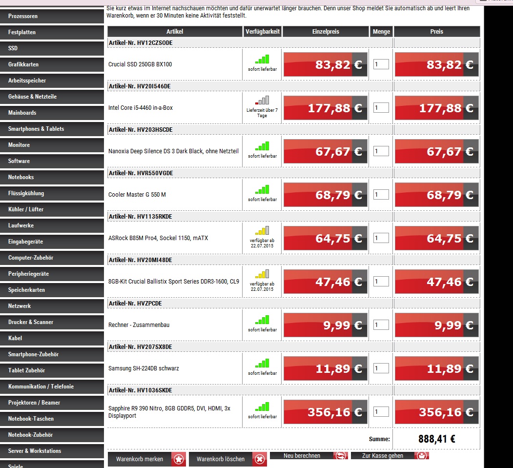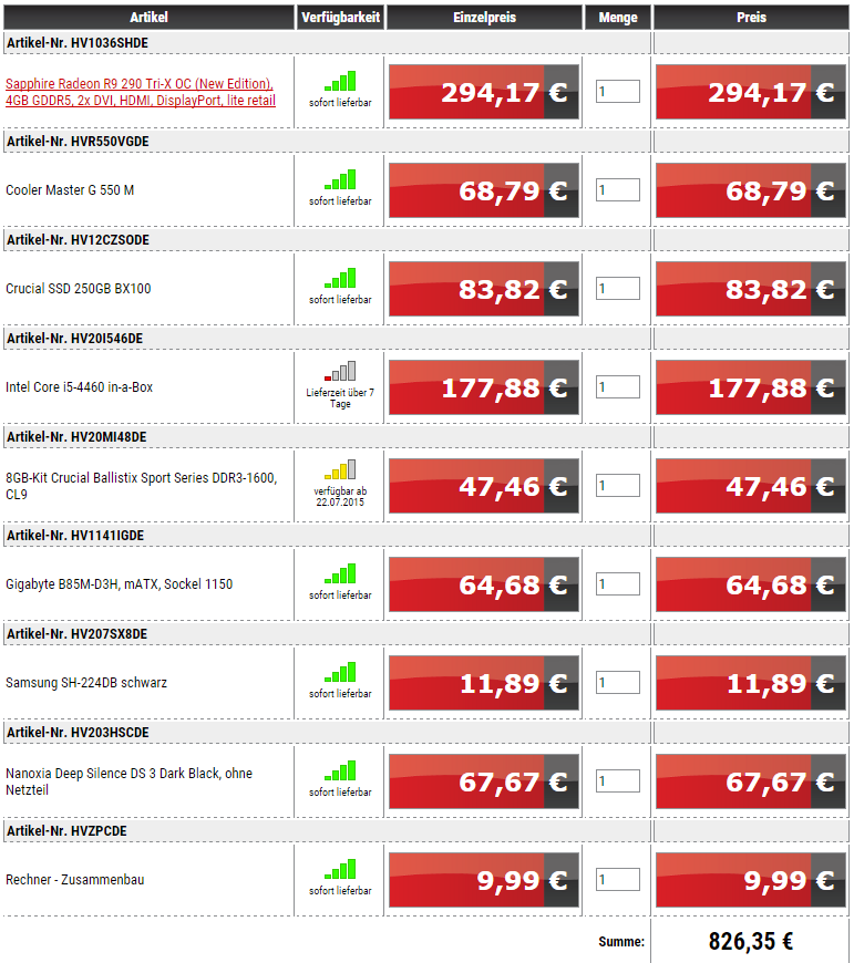 Alles in allem würde mich dieses System (mit Versand) 823€ kosten.
