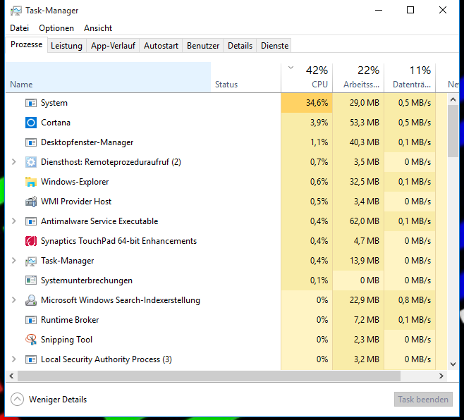 ich bekomme das Problem einfach nicht gelöst, seit kurzem hat die "System" Datei eine sehr hohe Auslastung von bis zu 35%, normal sind zwischen 2-4%.