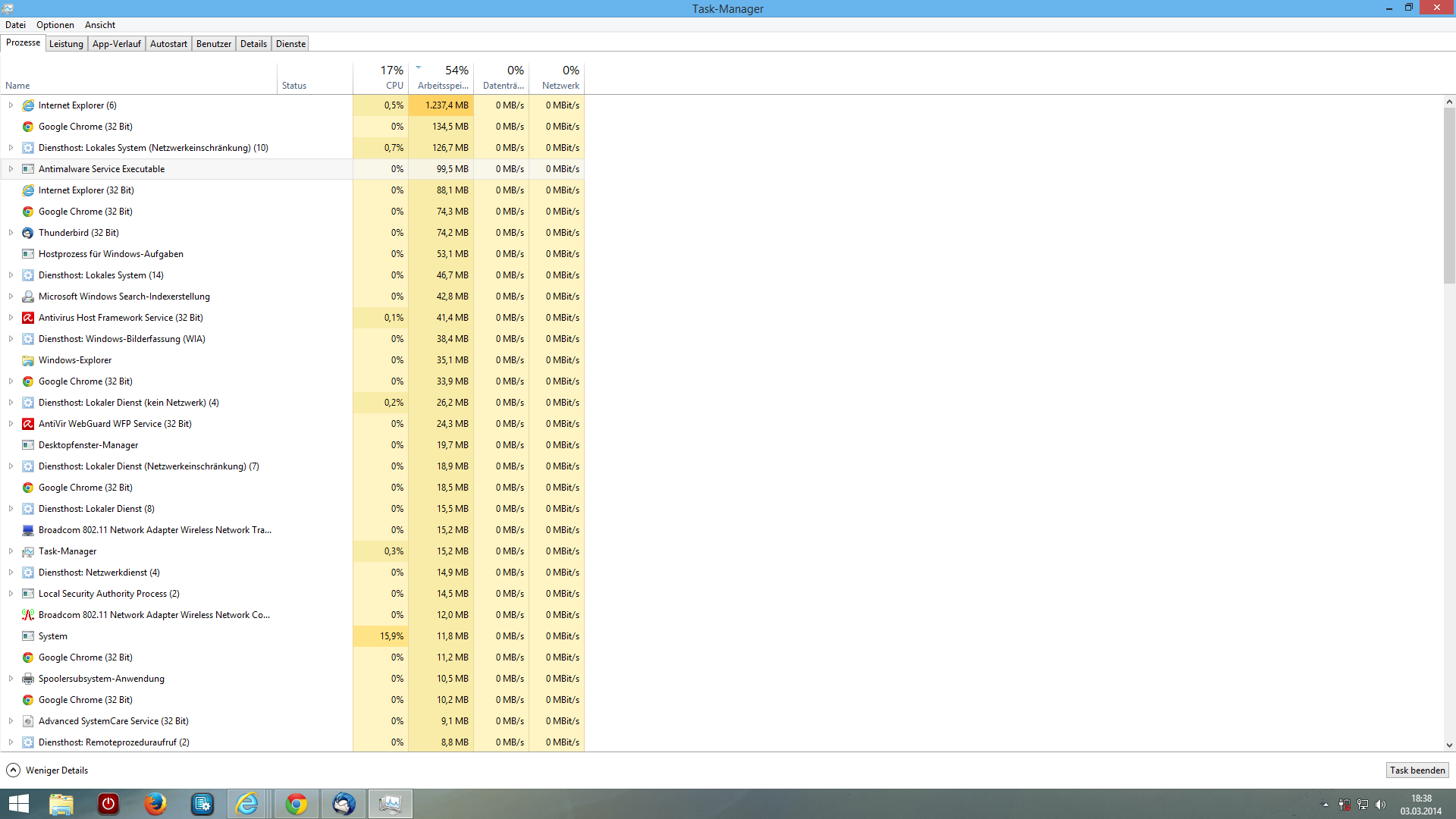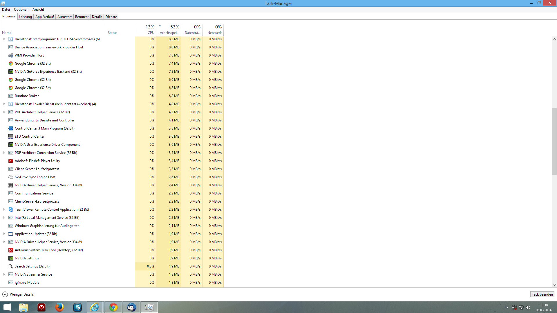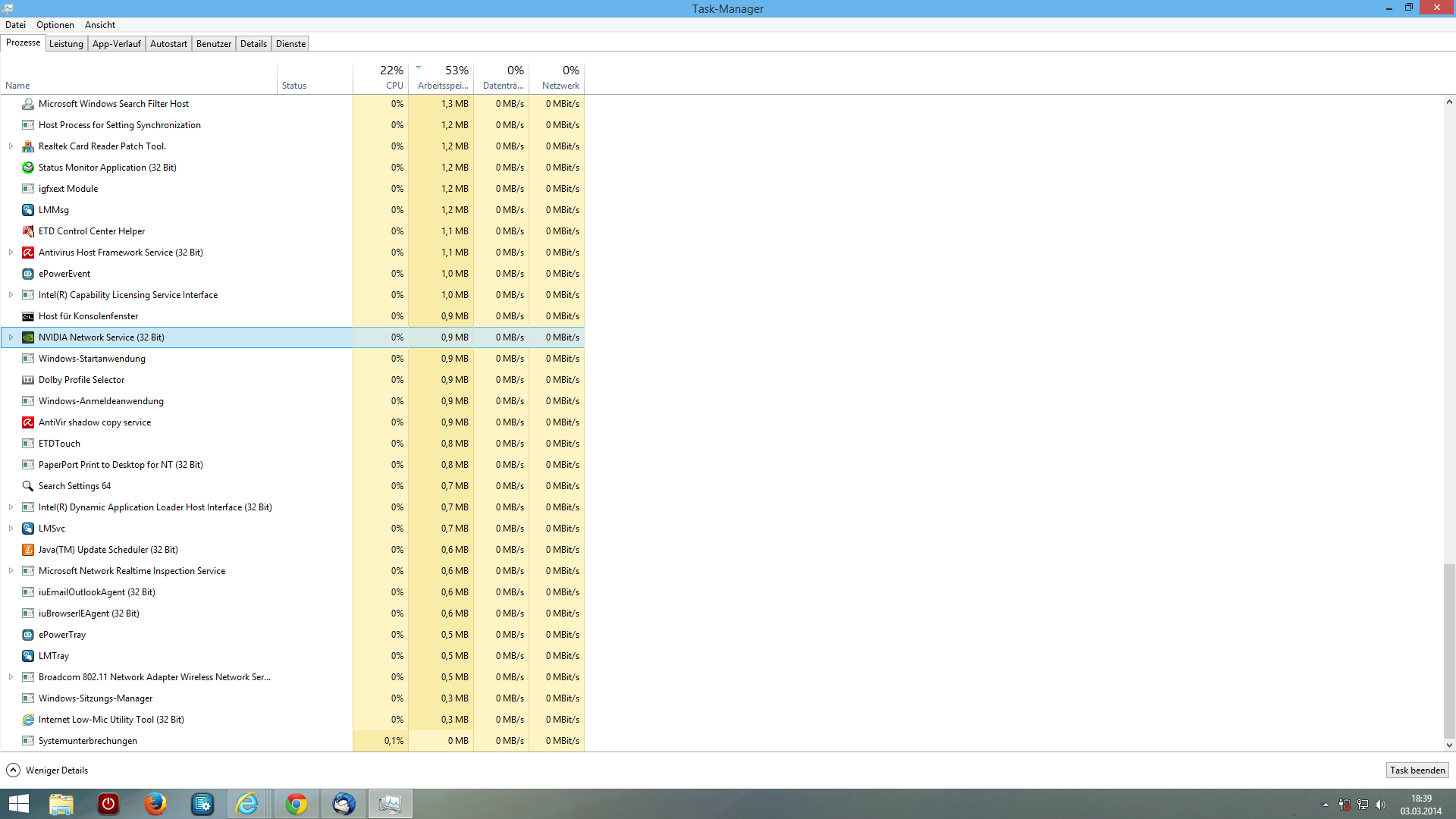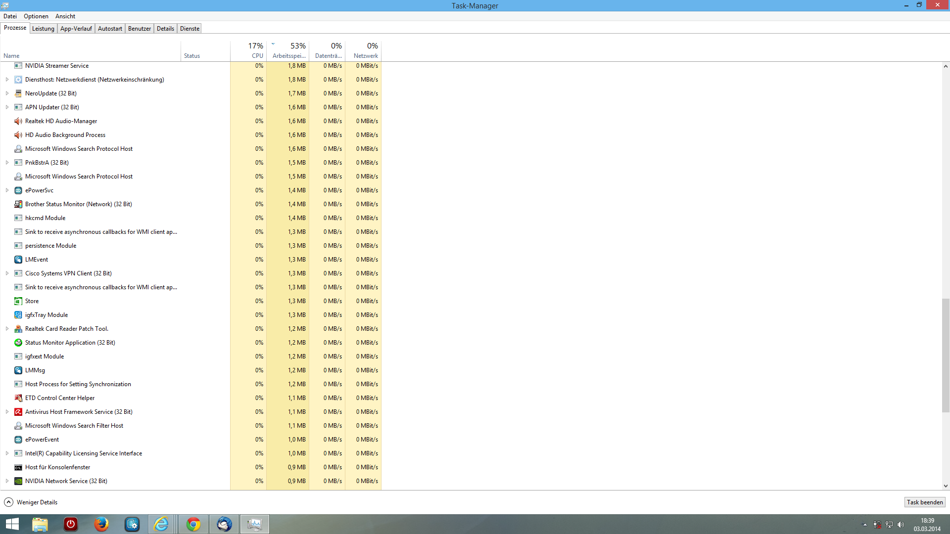 Hab mal ein paar Screenshots vom Task- Manager gemacht. Vielleicht kann ja jemand was damit anfangen, bzw. weiß was davon wirklich laufen muss und was nicht: