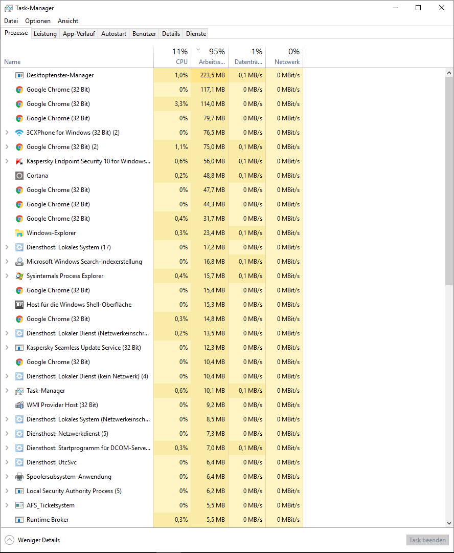 Viren etc können ausgeschlossen werden, Kaspersky scannt nach jedem Start und hat nie etwas gefunden. Auch sind alle Updates und Treiber installiert.