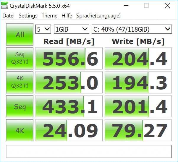 Ist die SSD hinüber? Mich wundert die extrem langsame leserate bei 4k, die restlichen Werte scheinen i.O. zu sein.