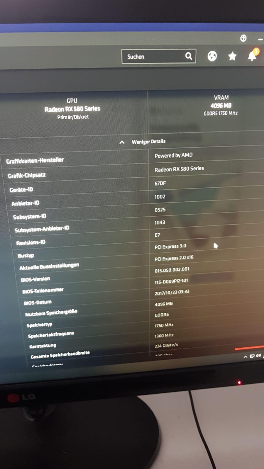 - Grafikkarte: ehm im Gerätemanager steht Dual RX580 series. --> is schon minimum 5 jahre alt.