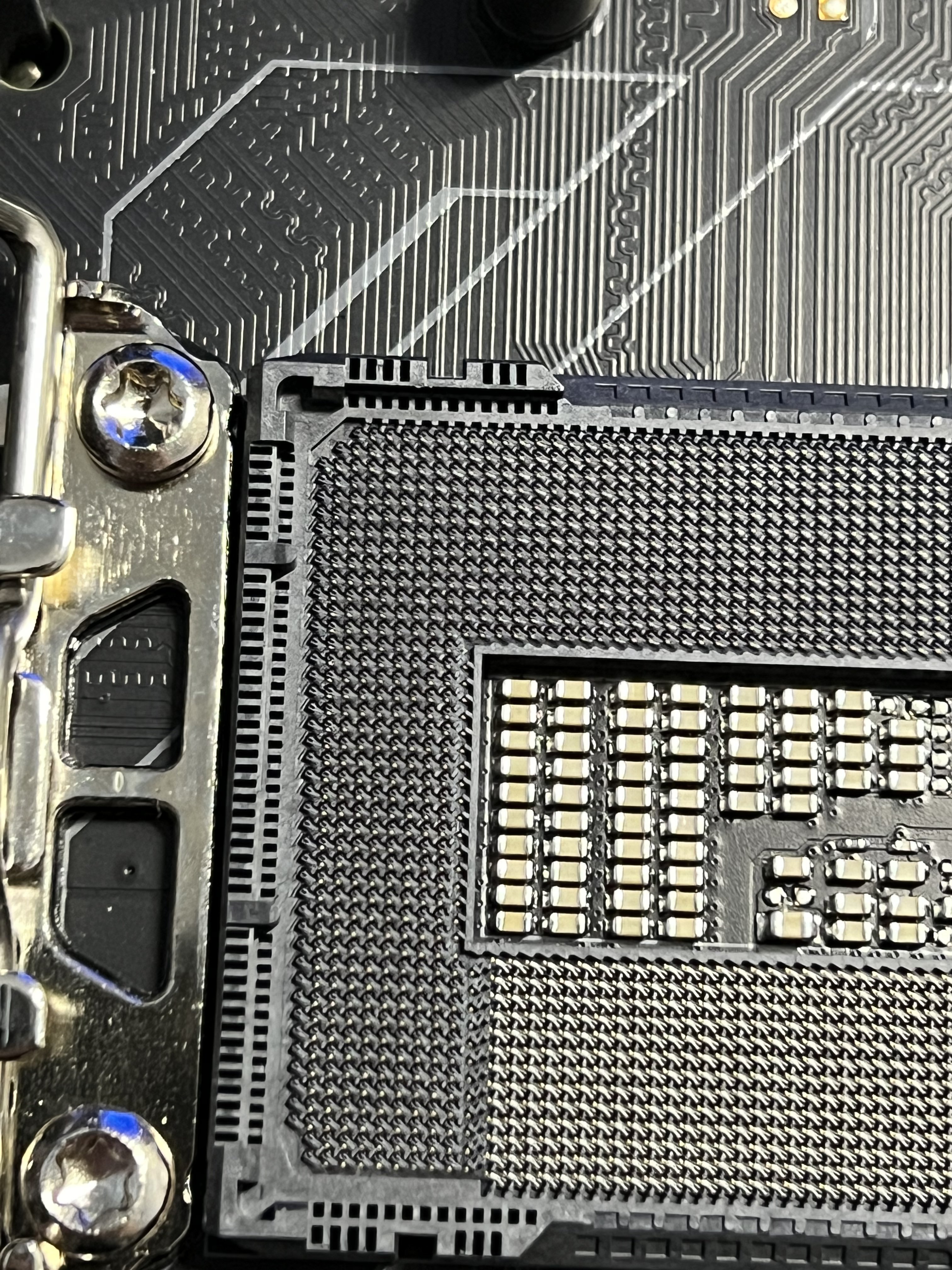Ich hab mir später sagen lassen, das die Intel 1700er Sockel wohl anfällig für zu viel Anpressdruck durch den Kühler seien, was hier nahe liegen könnte, so zugeknallt wie die Schrauben teilweise waren.