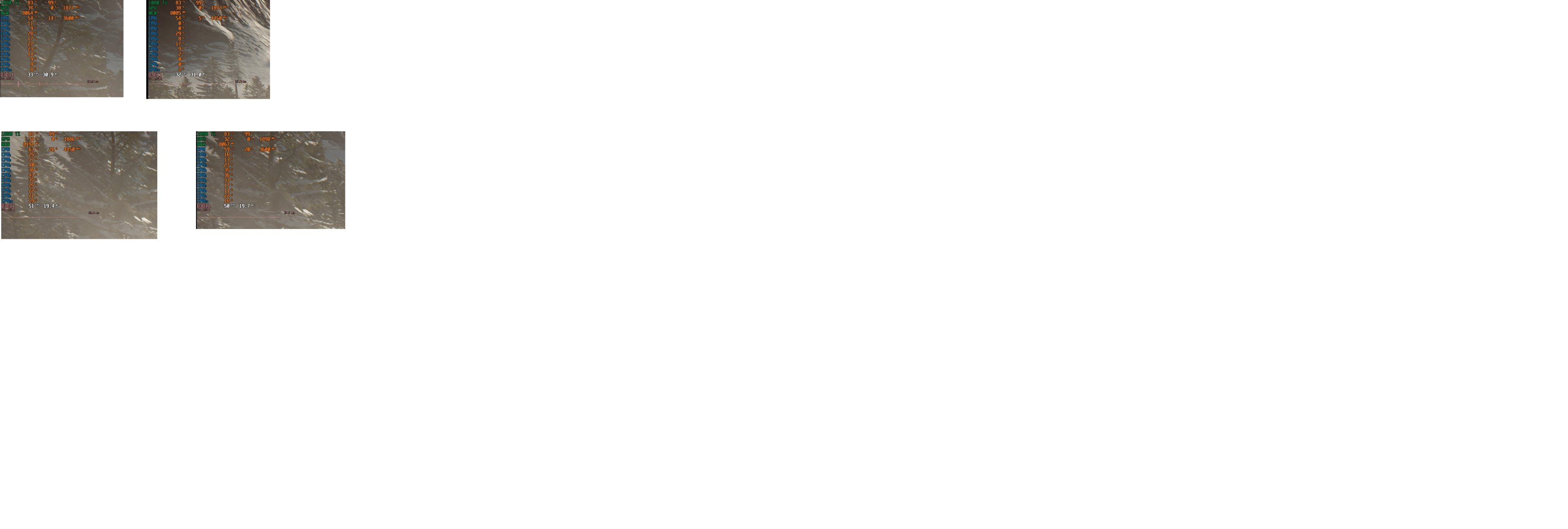 stehe mal wieder vor einem Problem, was ich nicht verstehe. Ich habe aktuell das Problem das ich beim zocken sehr niedrige FPS bekomme, reduziere ich die Auflösung dann bringt das nur minimal was. In den Systemeinstellungen habe ich kein FPS Limit und VSync ist auch aus. Woran könnte sowas liegen. Sonst gibt das eigenlich immer einen ordentlichen Schub wenn ich dann die Auflösung ändere. Hier ist mir aufgefallen das der Takt der CPU sehr schwankt. Die oberen Beiden sind UHD und die unteren beiden WQHD. Getestet habe ich das mit dem M28U Monitor und Sons of the Forest, ist bei Battlefield 2042 aber ähnlich. Auch wenn ich auf FHD stelle oder die Grafikeinstellungen auf niedrig stelle, bekomme ich nur etwas mehr als 60 FPS, hier kann doch irgendwas nicht stimmen.