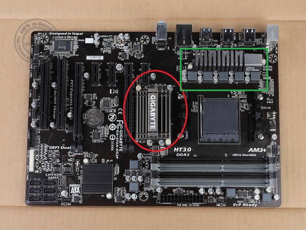 Dass das rote heiß ist, ist "normal" - wichtig wäre auch die Temperatur des grün eingerahmten.. Das ist die Spannungsversorgung für die CPU, und wenn die zu heiß ist (zB. weil du einen Tower-Kühler benutzt, der die Luft NICHT auf das Mainboard pustet), dann drosselt die CPU und es kommt zum stocken.