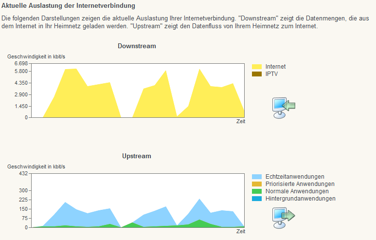 ich habe seit mehreren Wochen ein Problem mit meinem Wlan Router (FritzBox 7362 SL). Nämlich spielen ich und mein Bruder seit neulich Counter Strike: Global Offensive und es gibt selten ein Spiel, das bei unserer 6 MBit/s Leitung ohne Lag-Spikes abläuft. An dem Graphen im "Online-Monitor" im Konfigurationsprogramm der Fritzbox, den ich im Hintergrund laufen hab, kann ich erkennen, dass immer wenn der Ping grad von den üblichen 50ms auf über 400ms steigt, die Bandbreite ganz ausgenutzt ist, also Upload und Download Graph schießen nach oben (siehe Anhang). Das Problem ist, niemand im Haus macht im Internet irgendwas, was wirklich Bandbreite kostet, wenn dann surft mal eine Person auf irgendwelchen Internet-Seiten, aber bei jedem klick auf den nächsten Link schlägt der Ping bei uns für ein paar Sekunden so aus, dass das Spiel einfach unspielbar wird. Gibt es irgendeine Methode um das vorzubeugen? Irgendwas um die Bandbreite von anderen Geräten zu limitieren? Ich weiß, die 6 MBit/s Downstream die wir haben sind zwar nicht umwerfend aber für 2x CS:GO sollte es doch schon reichen, und nicht immer gleich abstrützen nur weil eine dritte Person einen Link anklickt. Danke im Vorraus