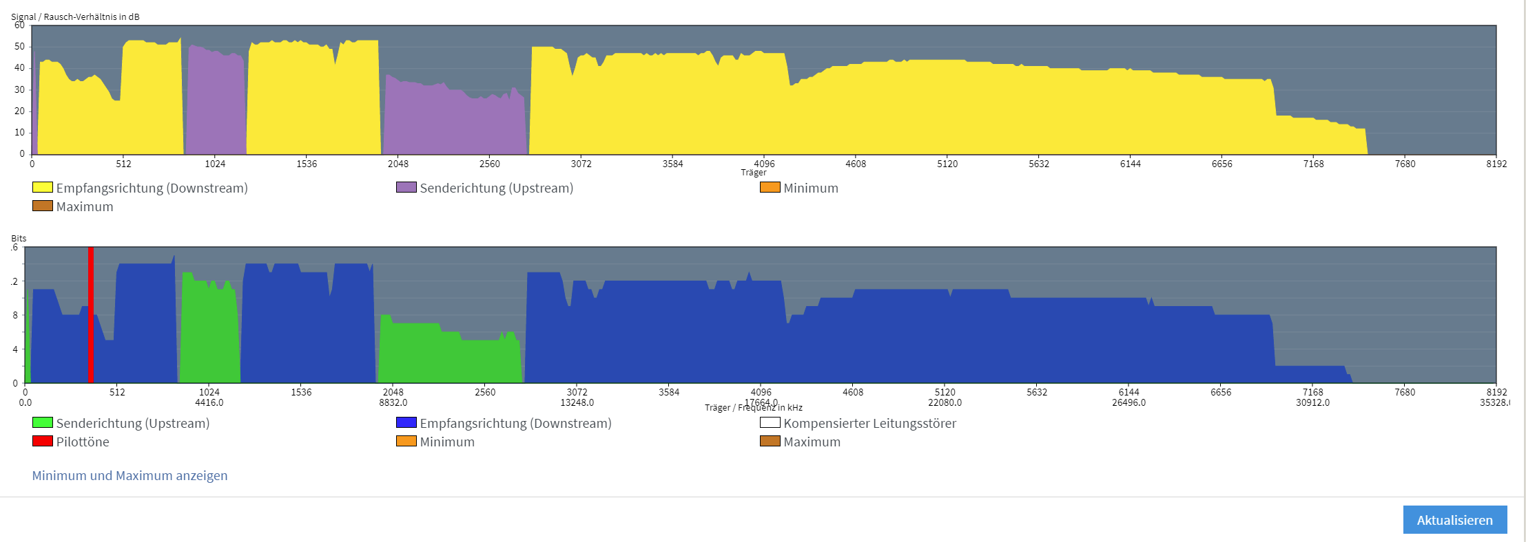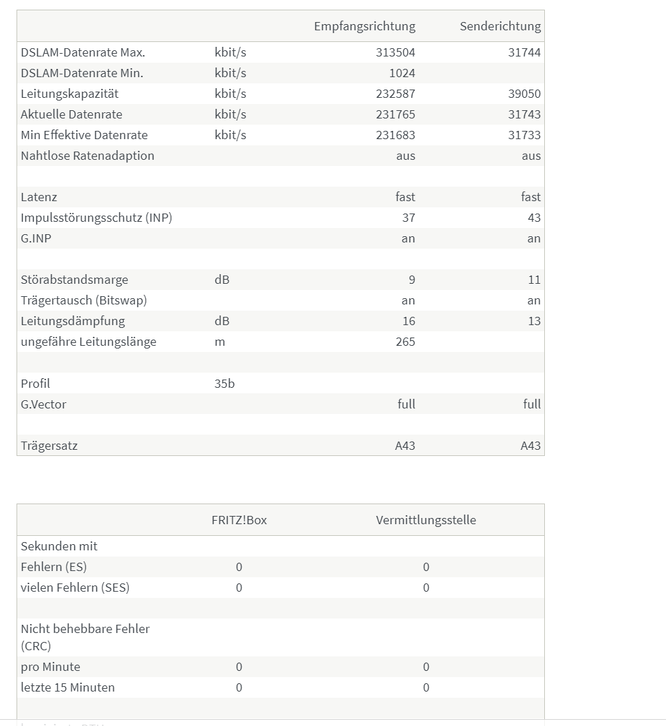 Es waren letzte woche 2 Techniker von unserem Anbieter im Haus. Die haben sich genauestens die Leitung angeschaut und haben uns beide versichert, dass es nicht an der Leitung liegen würde, denn im Keller, als auch an der Dose kommt alles voll an mit sehr wenigen Fehlern.Es wurde die TAE Dose und ein "Wandler" im Keller. Gut die Techniker verschwanden wieder und haben uns gesagt wenns wieder so sein sollte, sollten wir wieder anrufen. 2 Tage liefs, dann hat es wieder begonnen. Die Störsicherheitsregler, wie auch die vorherige DSL Versions Einstellung hat leider nichts gebracht.