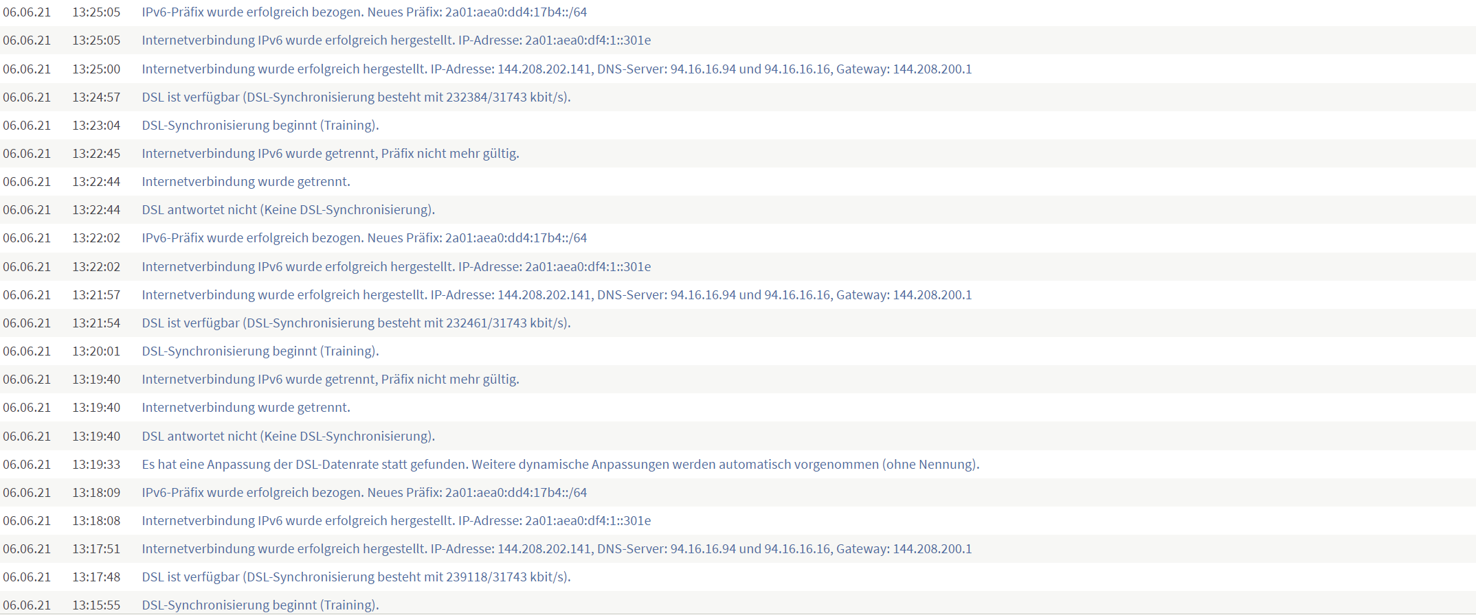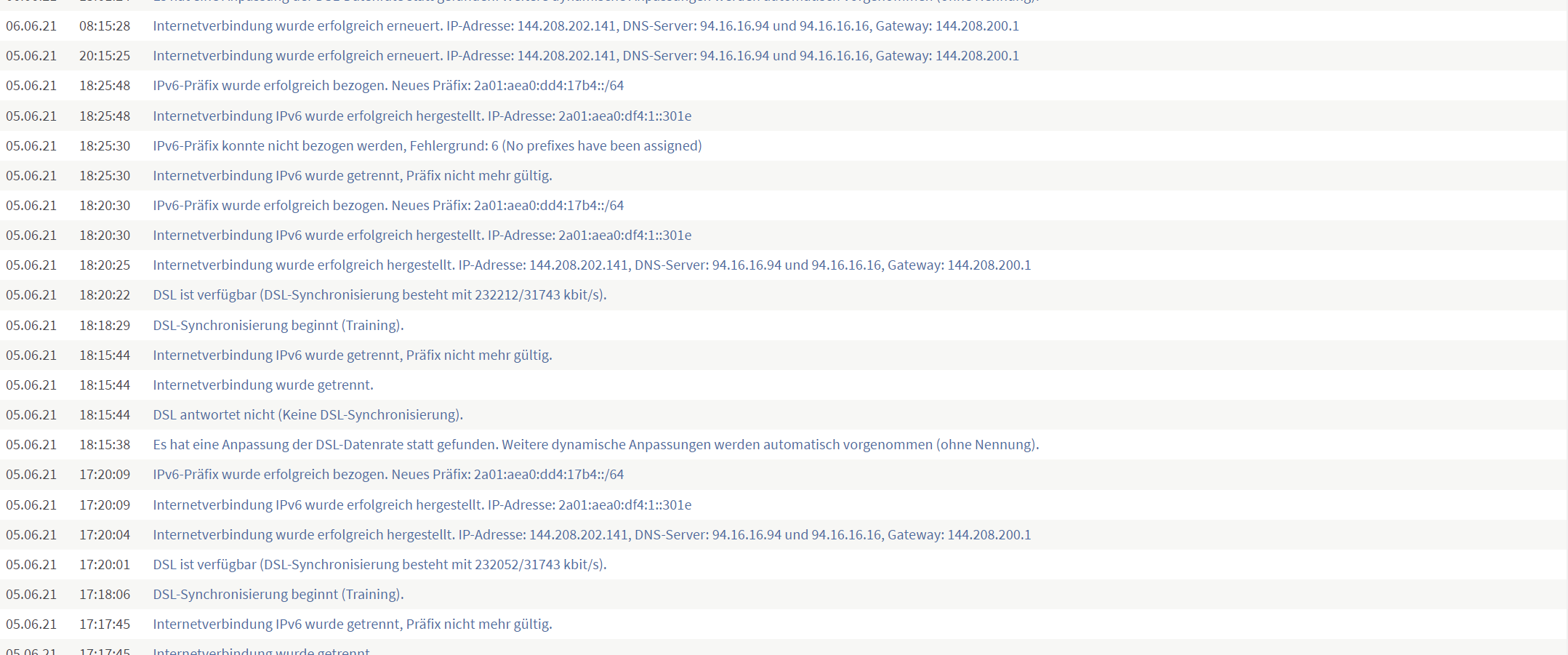 Anfangs war es so, dass die Internetverbindung bei unserer Fr!tzBox 7530 immer sporadisch abgebrochen wurde mit der Fehler meldung "DSL antwortet nicht". Stichwort sporadisch meine ich : vielleicht bricht sie einmal die Stunde ab, manchmal hält sie 4 oder 5 stunden, vielleicht hält sie auch 12 stunden oder sie bricht in der Stunde 5 mal ab. Immer mit der selben Meldung.