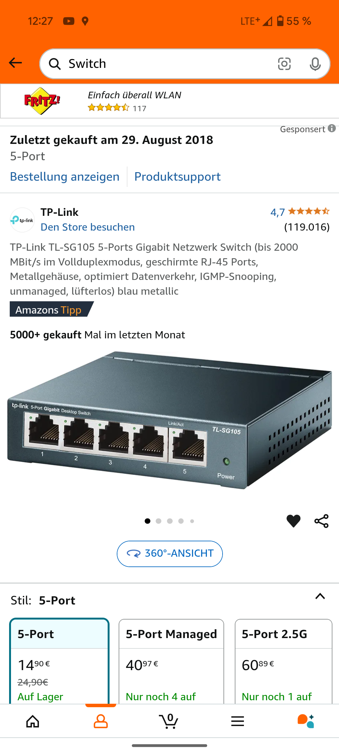 Der 5 Port Switch fungiert "nur" als Verteiler des Signals um entsprechend die Geräte im Wohnzimmmer mit Netzwerksignal zu versorgen.