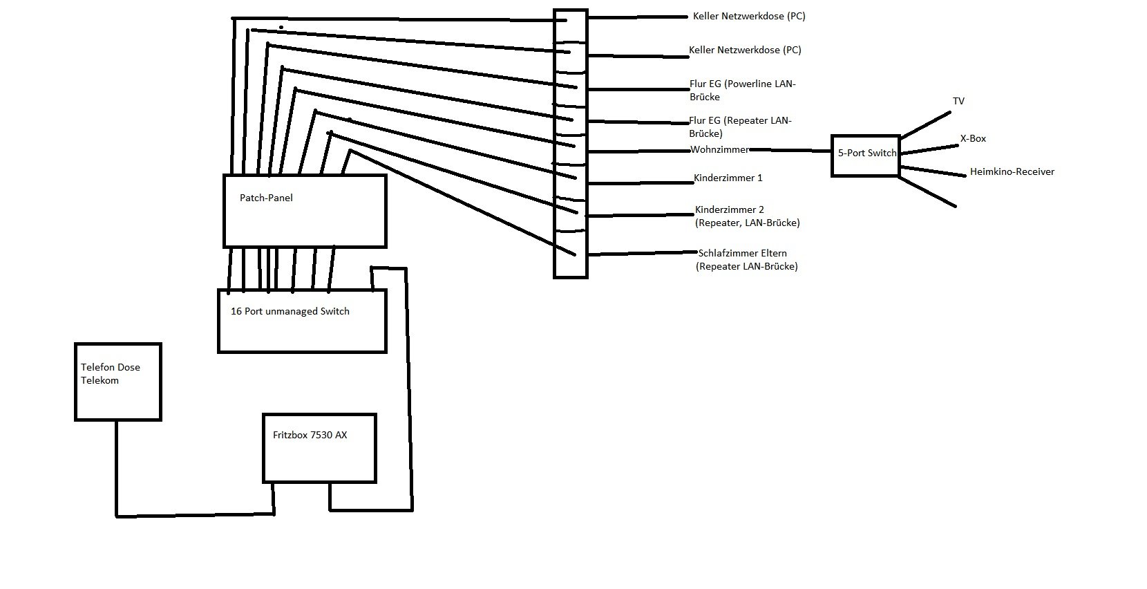 So, hab mir jetzt noch mal die Mühe gemacht eine Skizzierung des Netzwerks zu zeichnen, hoffe das macht es etwas verständlicher.