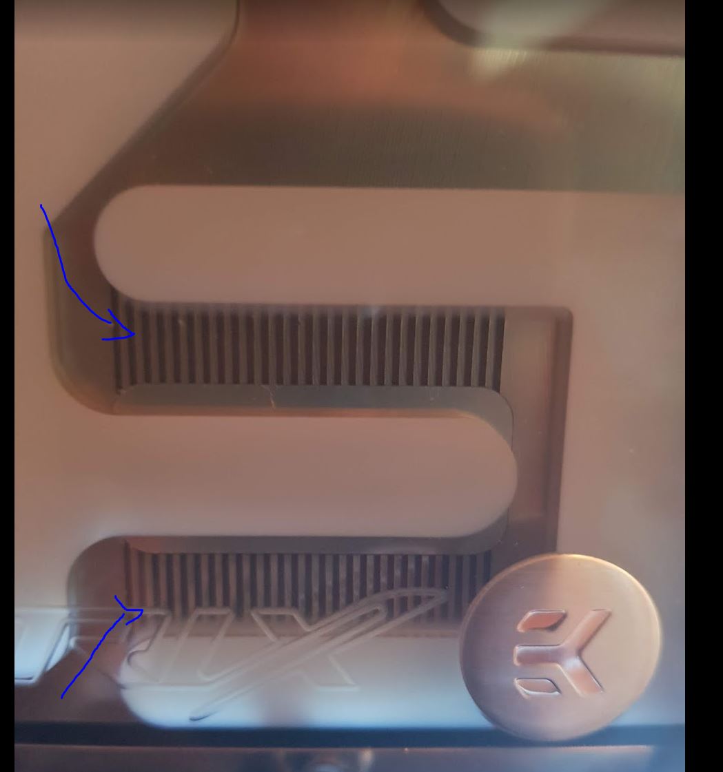 Irgendwie werde ich aber das Gefühl nicht los, dass die Flüssigkeit zwischen den "Ripppen" im GPU Block fehlt.