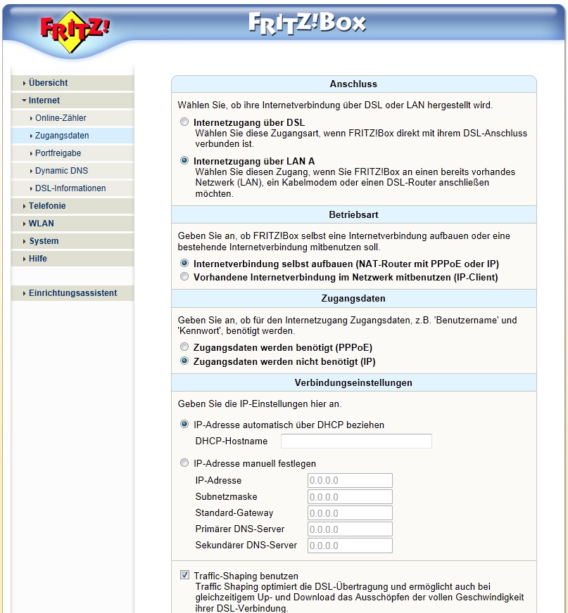 Ansonsten habe ich keine Idee mehr. Ich habe keine Einstellungen bezüglich der Weiterleitung verändert. Nur das Modem angeschlossen und Internet über LAN A eingeschaltet.