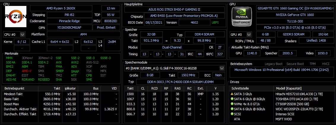 - Arbeitsspeicher (RAM): 32GB G.Skill Aegis DDR4