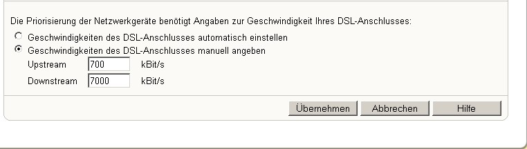 - die Übertragungsrate setzte ich ebenfalls runter (DL 7000, UL 700) (Anhang 2)