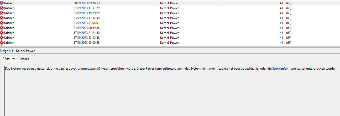 Im ereignisanzeige steht kernal 41 hat das was mit den Netzteil zutun das die 550 watt zu wenig ist ?