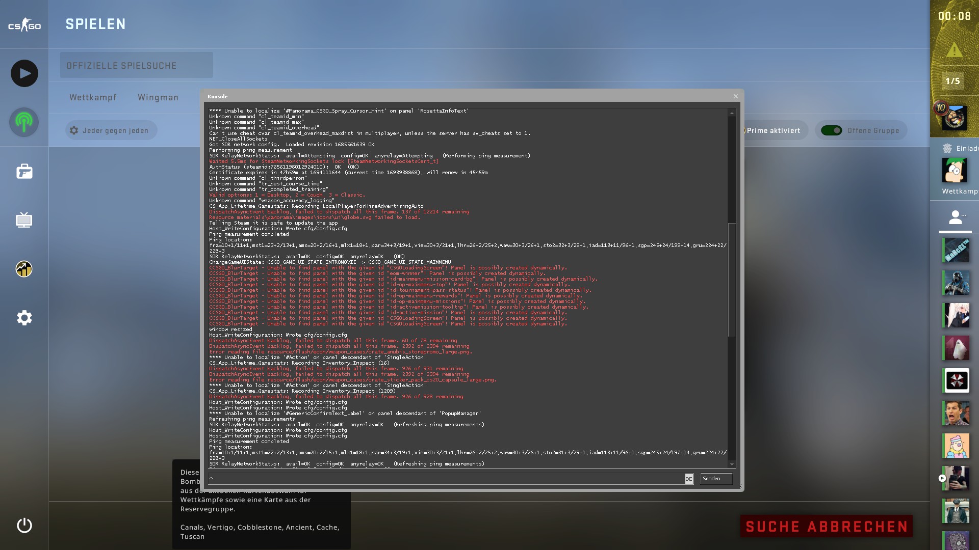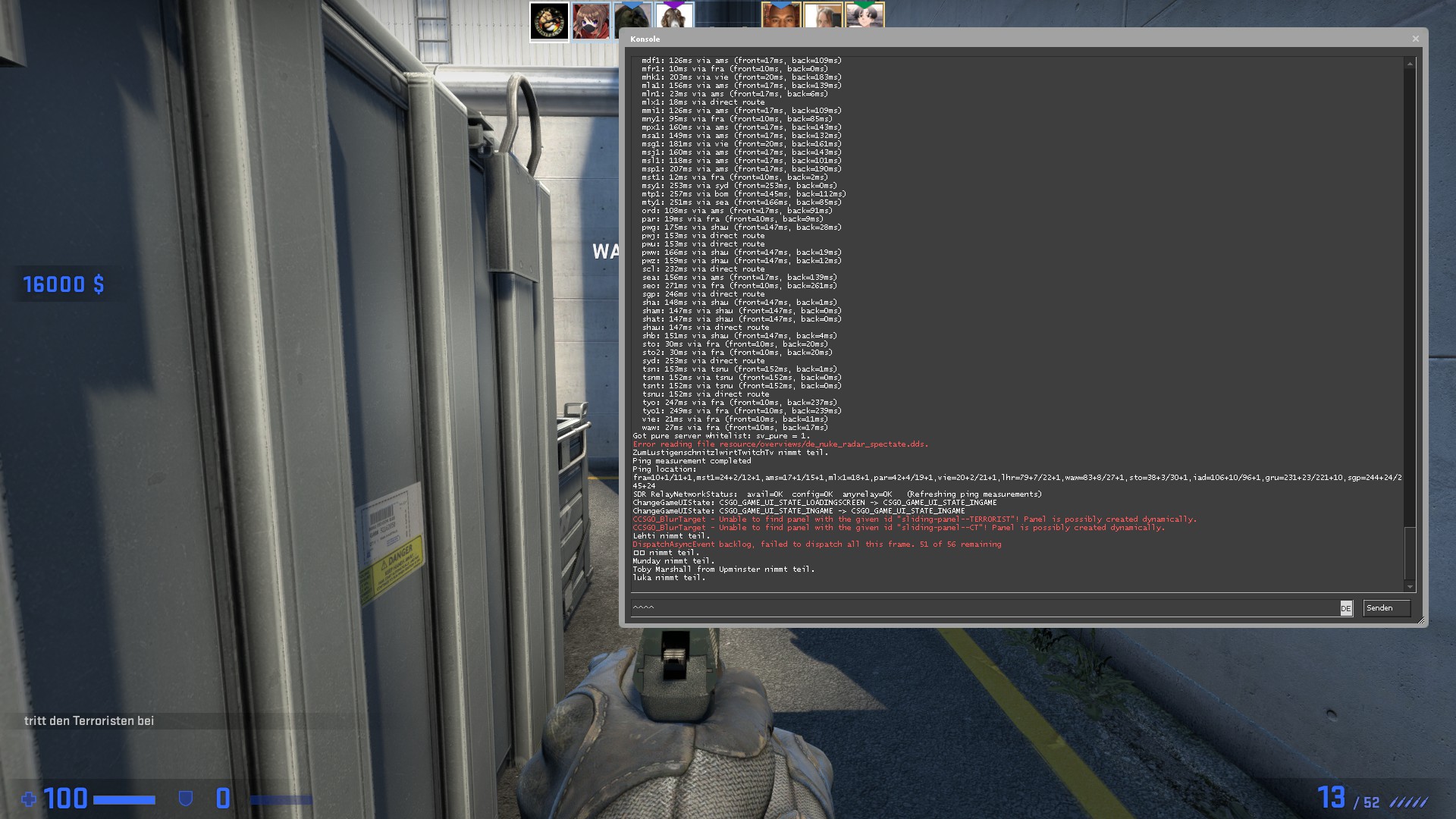 Habe einige Bilder gemacht von der Konsole immer, wenn die Meldungen kommen Laggt es.