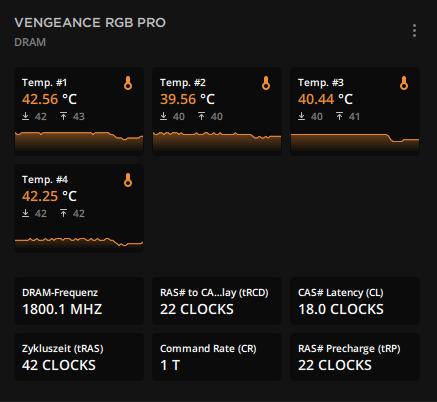Da es sich beim RAM um Corsair Vengeance RGB PRO handelt, sehe ich auch dass die RGB-Beleuchtung weiterhin leuchtet und sich auch von der iCUE-Software ansteuern lässt.