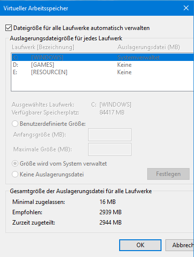 ich habe seit dem Upgrade auf 16GB RAM das Problem, dass ich öfter mal eine "out of memory" Warnung in verschiedenen Apps erhalte, obwohl nicht mal 10GB belegt sind. Das kann im Chrome auftreten, dass ich keine neue Seite mehr öffnen kann, der Windows Task-Manager öffnet in einer unvollständigen Ansicht, Spiele meckern, etc. was auch die Erklärung für häufige Abstürze sein kann, die ich früher nie hatte. Das Spiel "Ori and the blind Forest" z.B. stürzt am laufenden Band ab, während Witcher 3 stundenlang durchhält.