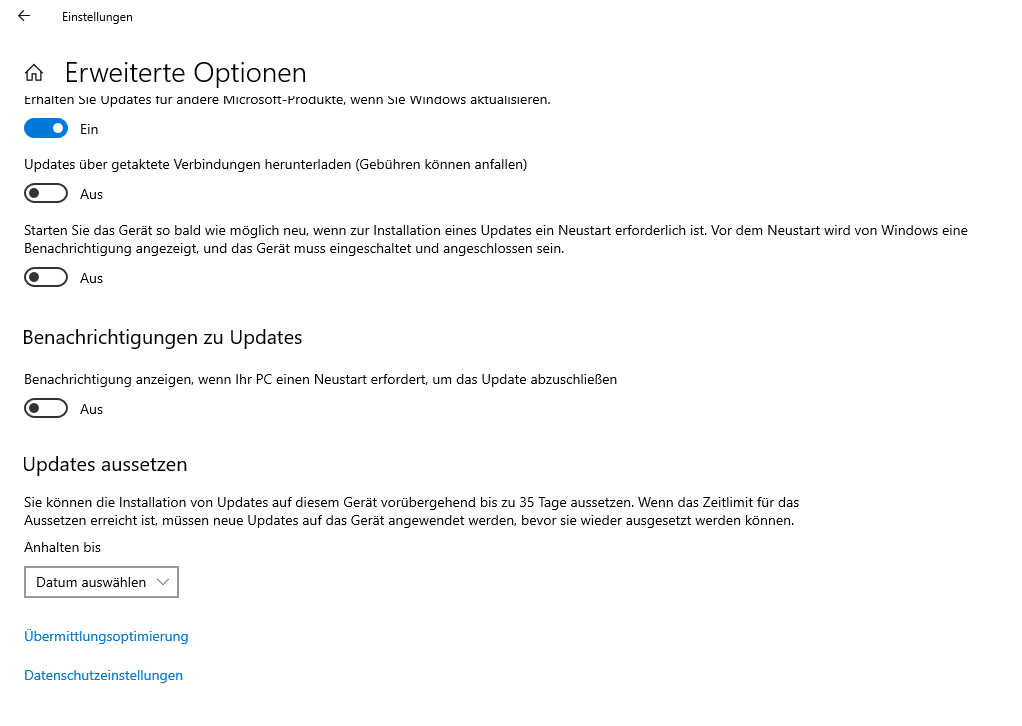 Und bei der 1903 ist es bei mir auch nicht anders, habe alle Rechner gezielt auf die 1903 gebracht. Sobald eine Verzögerung in den Registry Keys drin steht (also auch über die Menüeinträge, sofern man diese sehen kann), findet man auch manuell nichts mehr (Jetzt nach Updates suchen). An allen 4 Rechnern.