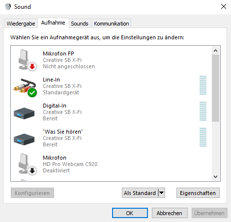 ich hatte bis vor 10 Minuten das Windows 8.1 PRO. Nachdem ich das Update zu Windows 10 Pro gemacht habe, funktioniert mein Mikrofon nicht mehr. Ich weiß nicht, weshalb. Es ist alles wie vorher eingesteckt und trotzdem erkennt er das Mikrofon nicht.
