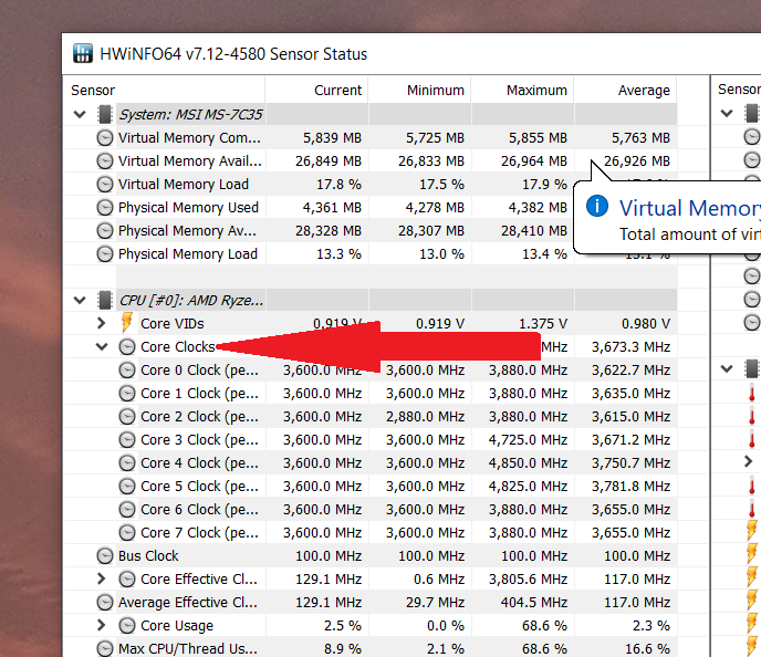 Klappe mal Core Clocks auf und mach einen Screenshot.