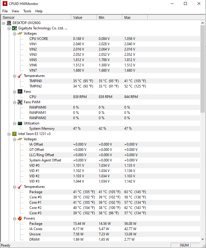 Habe maximal 76 Grad bei der GPU und nicht über 50% auslastung, bei der CPU zeigt es mir zwischen 80% und 100% an. Vor dem WIndows Update waren das auch um die 90%, aber keine 100%. Habe einmal Bilder vom HWMonitor gemacht, ohne etwas ausser dem Browser offen zu haben. Falls noch weitere Informationen benötigt werden, kann ich diese gerne nachreichen.