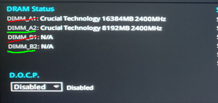 Installiere ein Modul in Slot "A2" und das andere in Slot "B2".