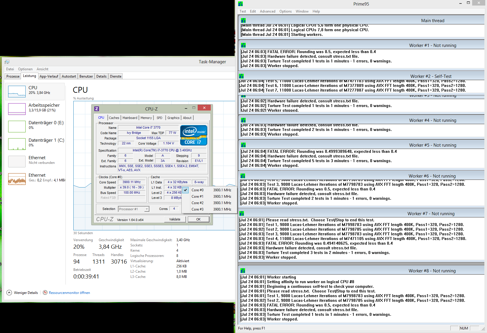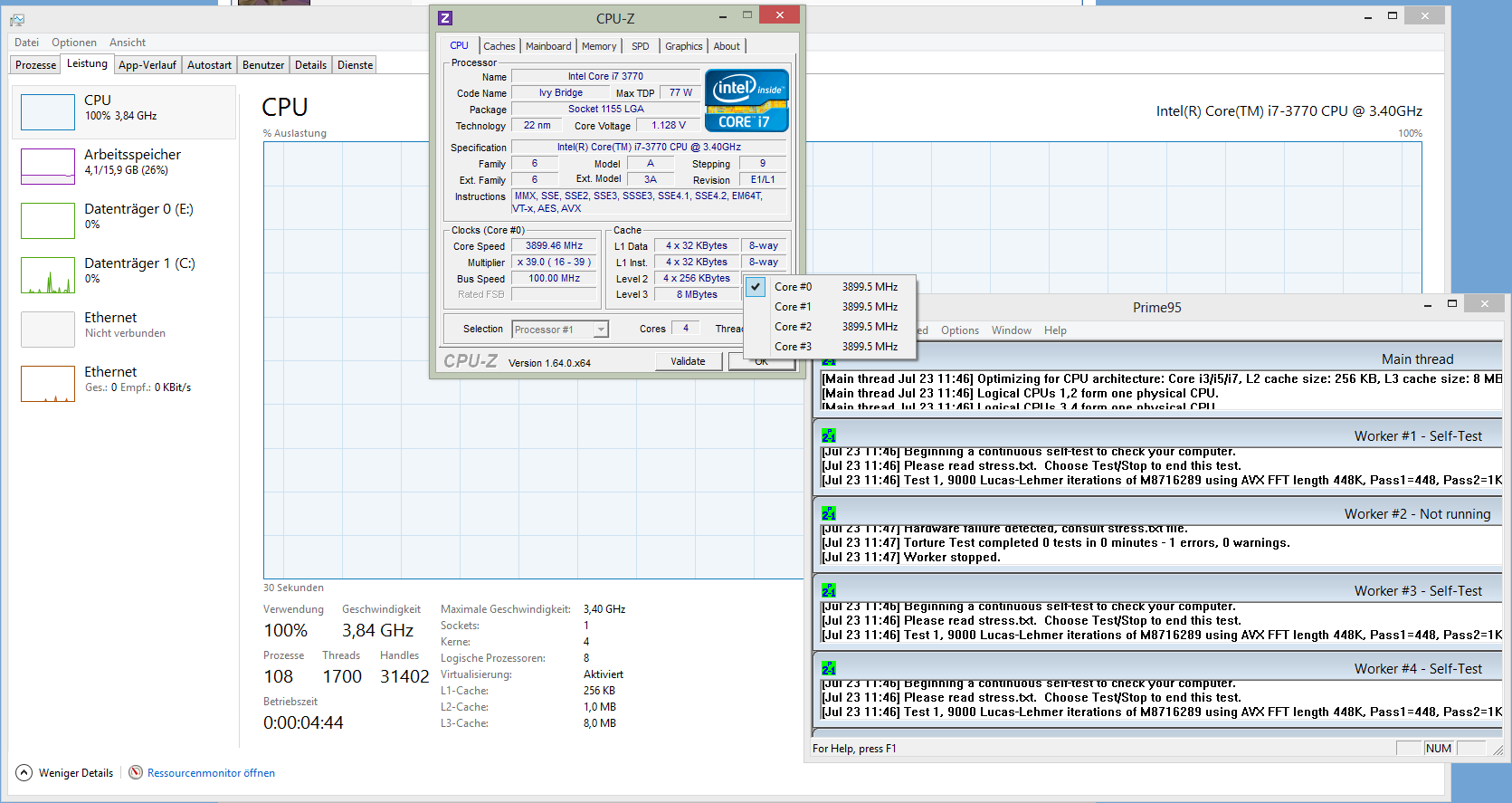 Habe ich ausgewechselt, weil ich eigentlich ziemlich überzeugt war das die CPU defekt ist, allerdings änderte sich nach dem Wechsel nichts. Die "neue" CPU ist die gleiche nur non-K.Waldheinz schrieb:laut dem CPU-Z Screenshot hat die CPU einen Takt von 3,4GHz, könnten so auch die 3,9 anstatt 3,7 im Turbo zustande kommen und das ist dann einfach zu hoch?
