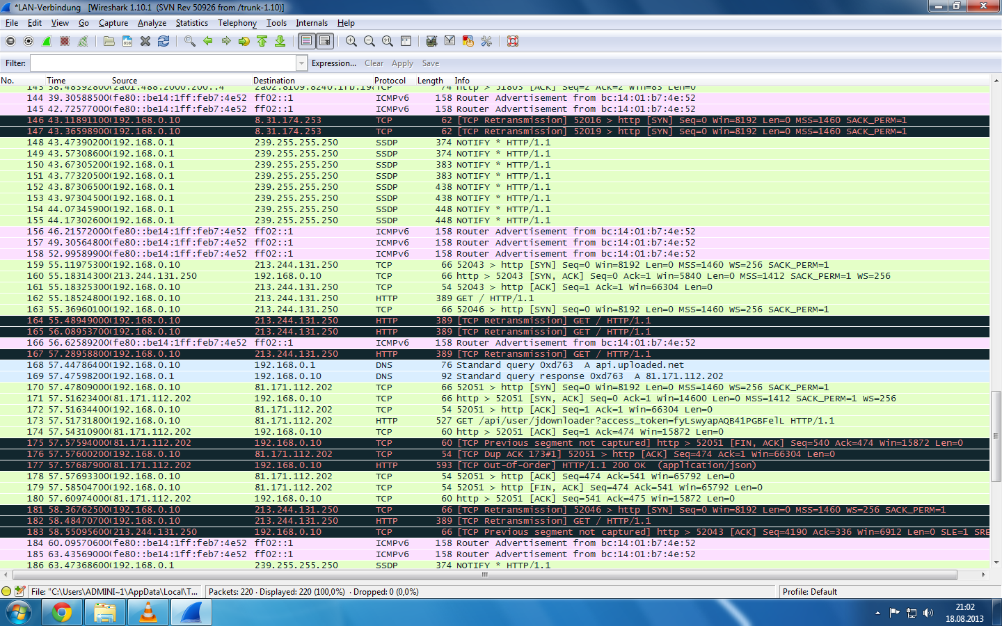 Auf die darauf folgende HTTP Anfrage kommt allerdings keine Antwort mehr bei dir an, und er sendet die Anfrage mehrmals erneut ab 164.