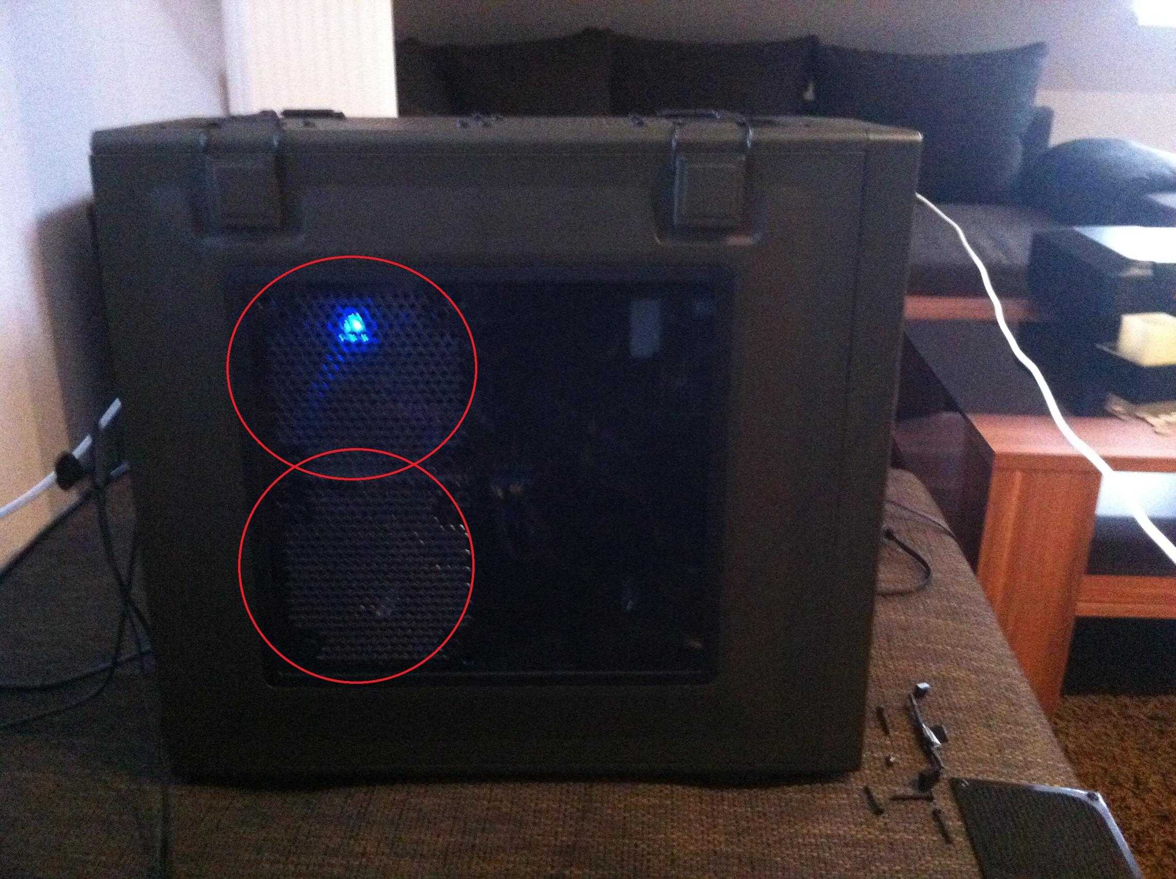 was denkt ihr von dem Airflow in dem Gehäuse - bin am überlegen ob ich das Plexiglas durch ein geschlossenes Plexiglas ersetzte oder halt meine 2x 120mm Jetflo PWM Lüfter dort einsetzen.