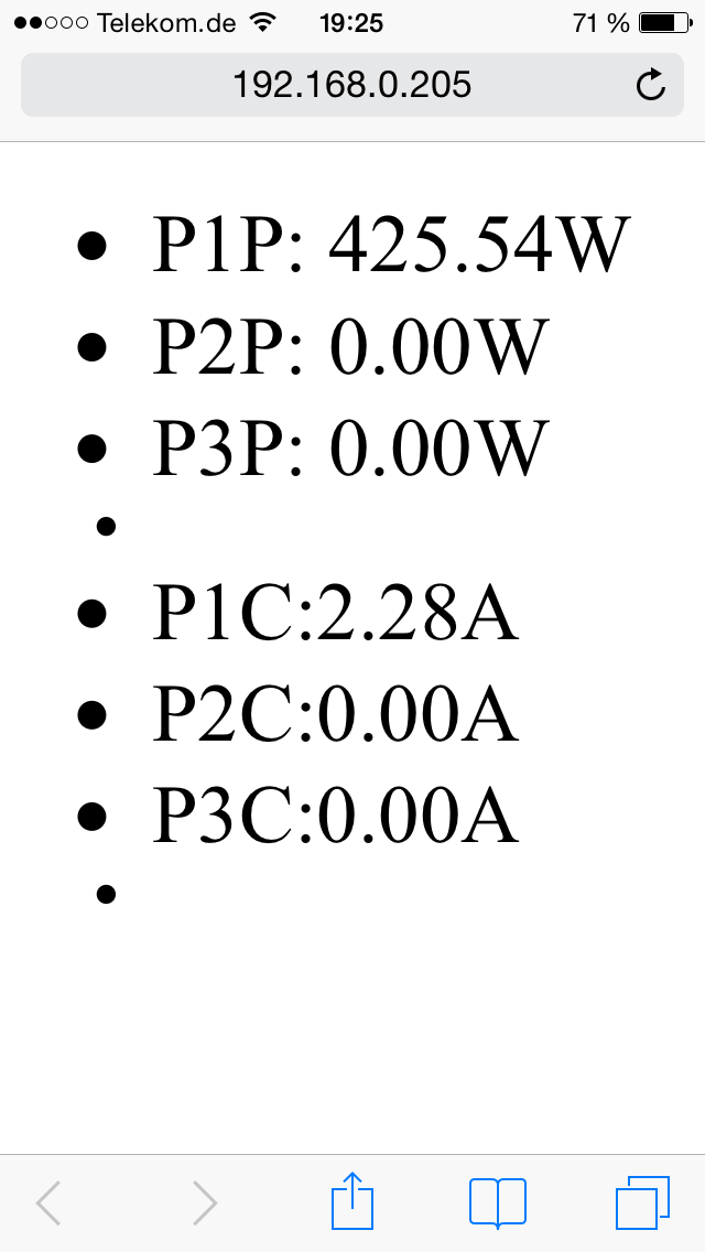 Ich würde nun aber gerne die Leistungsaufnahme aller drei Phasen als Livezahl auf einer Homepage darstellen, also so das sich der Wert jede Sekunde (ist auch nicht schlimm wenn nur alle 5-10s) aktualisiert?
