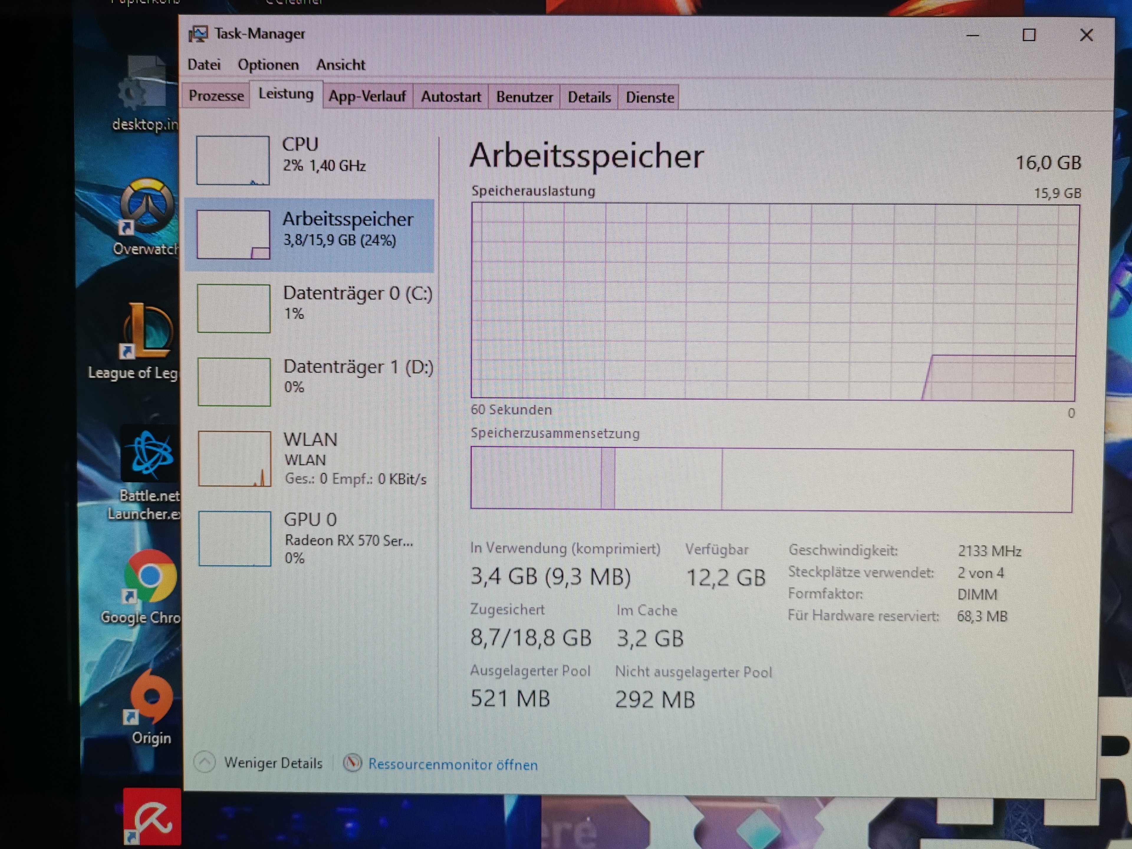 Also da ich schon lange gesucht habe und langsam verzweifel, wende ich mich hier an euch. Also ich kann schon im vorraus sagen ich bin kein Experte xD. Aufjedenfall Funktioniert beim Pc alles normal, bis man ein spiel startet. In meinem Fall habe ich league of legends probiert, und selbst dann funktionieret noch alles bis ich mit der tab + alt Taste im spiel raus und rein switche. Es läd einbisschen bis es switcht und ist dazwischen halt schwarz und fühlt sich hängend an. Schlimm wird es aber erst, wenn man dazu noch spotify öffnet. Dann fängt das Spiel bzw. der ganze Pc an zu hängen und diese freezes können dann auch manchmal so lang anhalten bis ich wieder hin und her switche was auch nur beim spamen funktioniert. Und während den games gibt der PC auch manchmal 4 schnelle gleichmäßige piepser von sich. Es ist halt nervig und macht musik hören beim spielen unmöglich.
