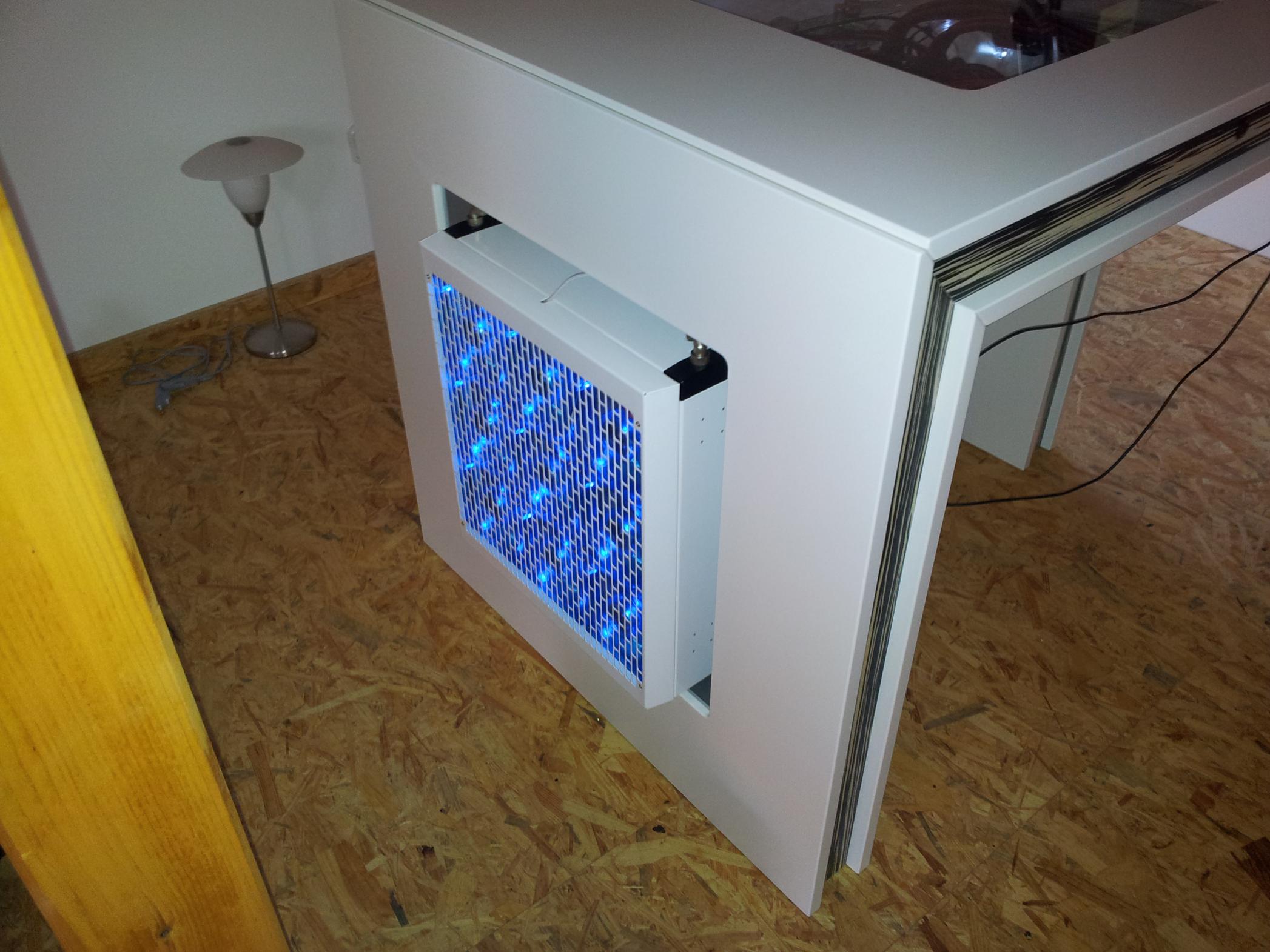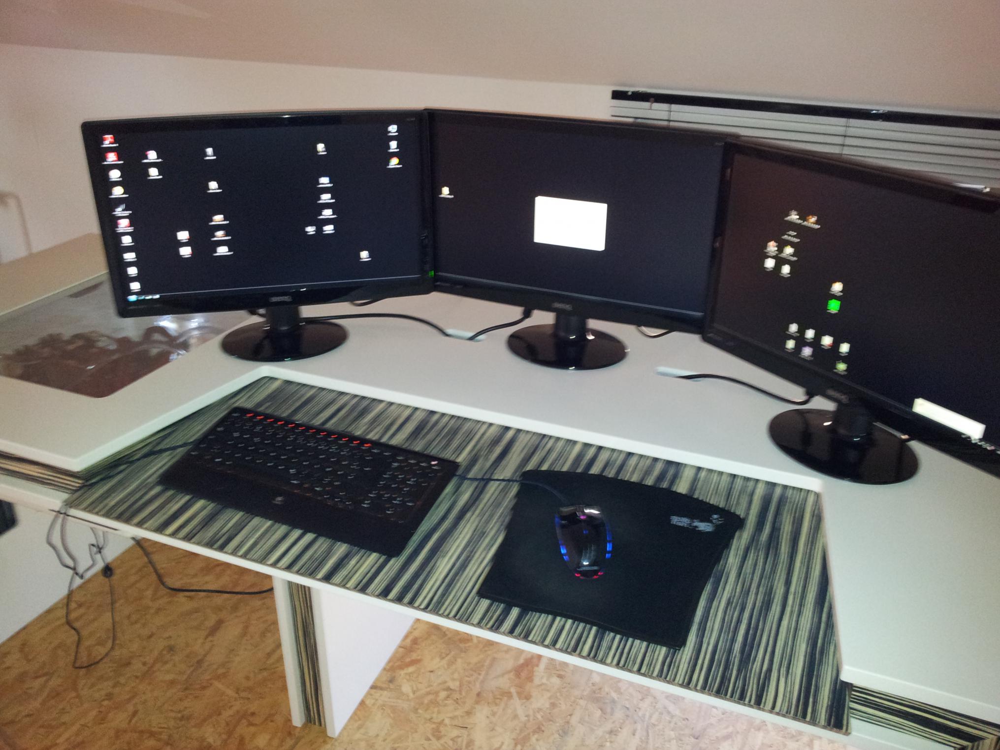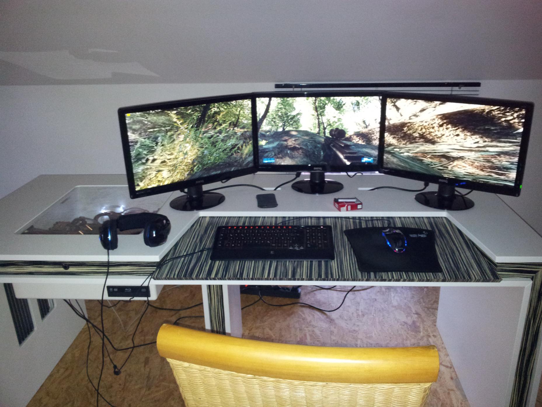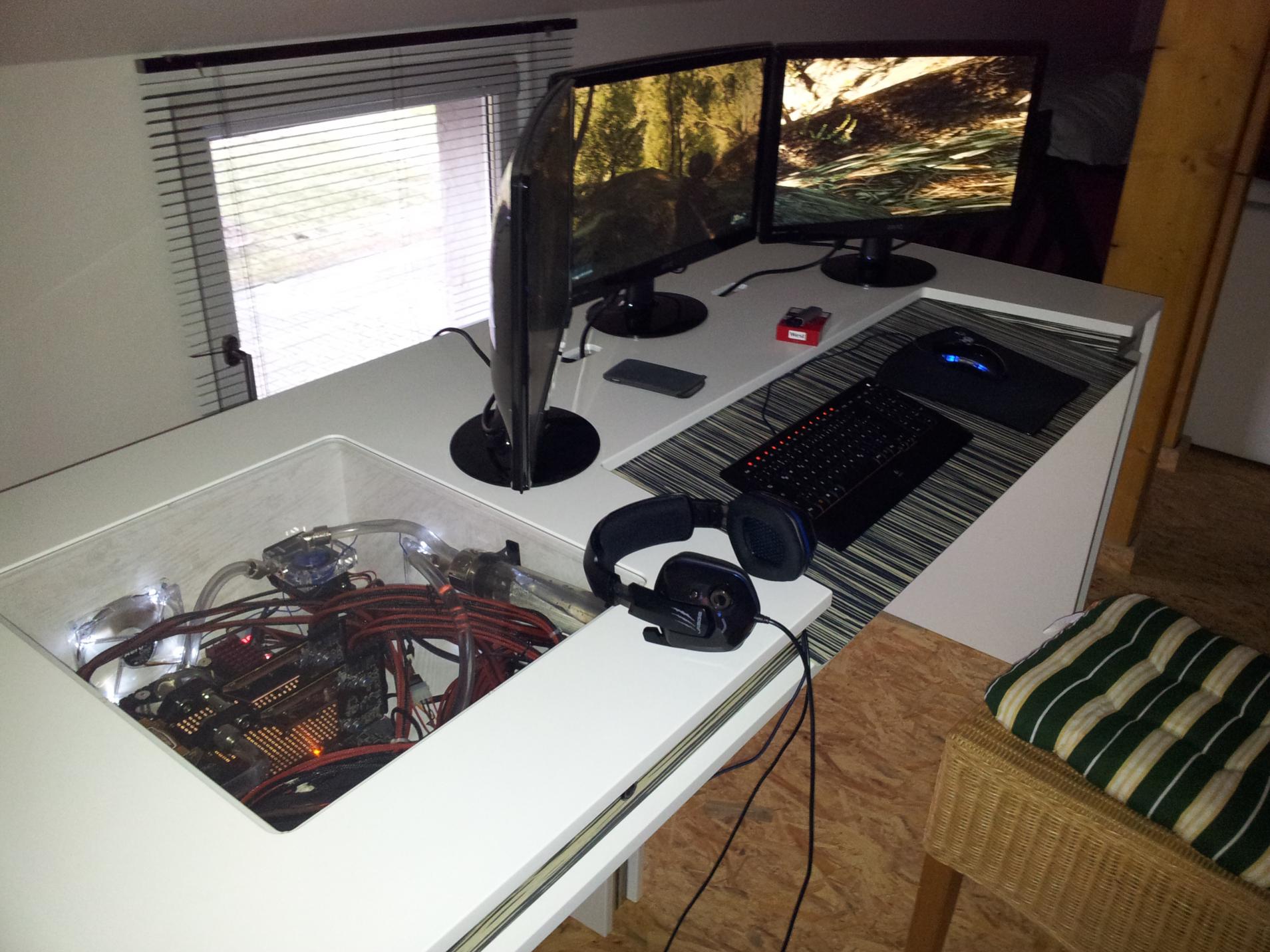 So die Bilder sind da , leider mit Unordnung der Netzteil Kabel denn ich bekomme nächsten Monat ein neues. Und die anderen kabel werden alle noch im Tisch versteckt.