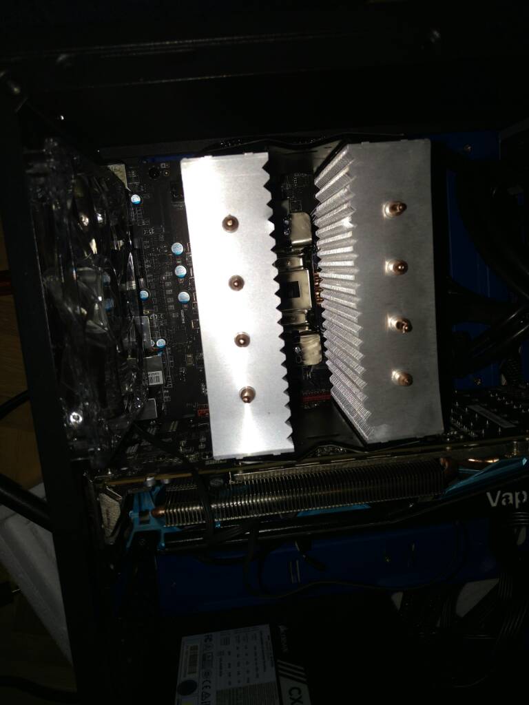 ( bitte nicht wundern das mein Cpu kühler im Heatsink sitzt da Ich Ihn inklusive Heatsink bei der versuchten Fehler Diagnose entfernt habe um das Cpu Kabel besser erreichen zu können)