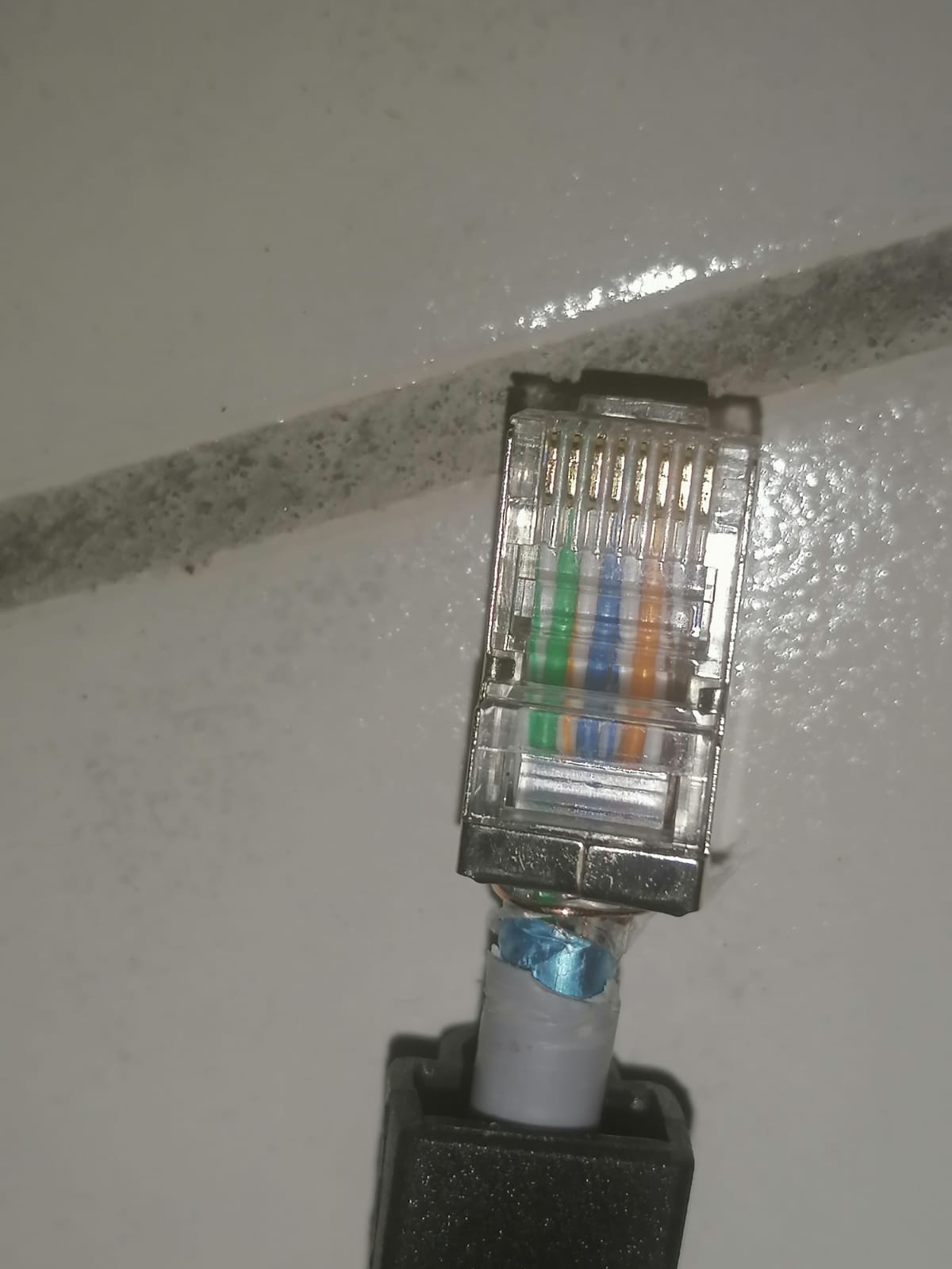 Er hat ca. 30m CAT5e-Kabel verlegt (Verlegekabel kein Patchkabel) vom Switch zu einem AccessPoint und ich habe dann die Stecker gecrimpt.