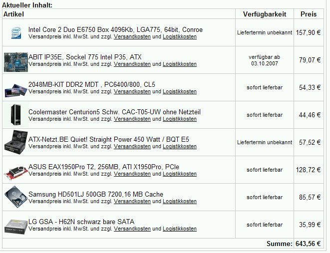 So wie es aussieht, werde ich am Ende dieser Woche einen PC beim Hardwareversand bestellen.