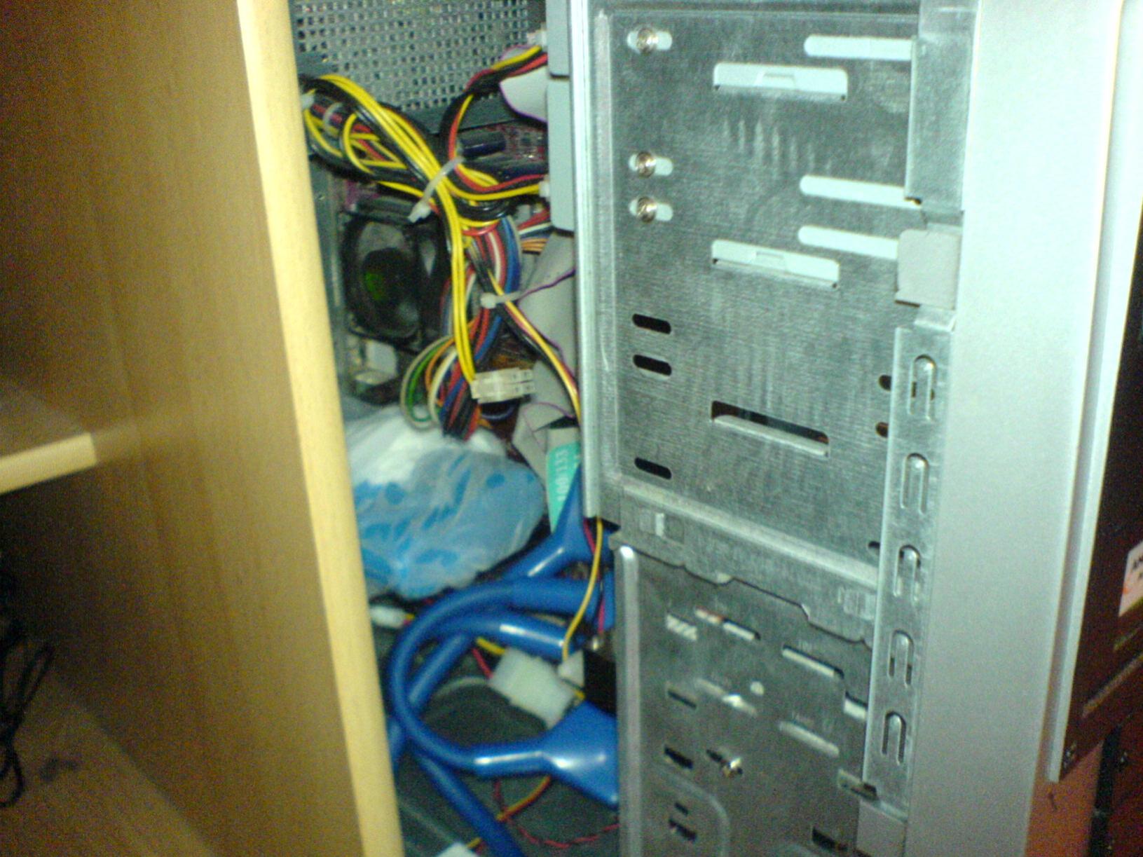 Das Gehäuse ist schon weitesgehend entfernt, aber den Tower einfach vor einen Ventilator setzten ist nicht drin, weil dieser quasi in einer Schrankecke "montiert" ist.