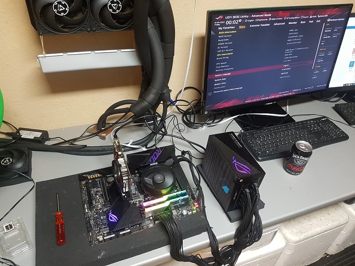 Zum testen brauchst du nur das Board,Cpu,Nt,Ram und was fĂŒr die Bildausgabe +Tasta das ganze auf einen Karton aufgebaut.