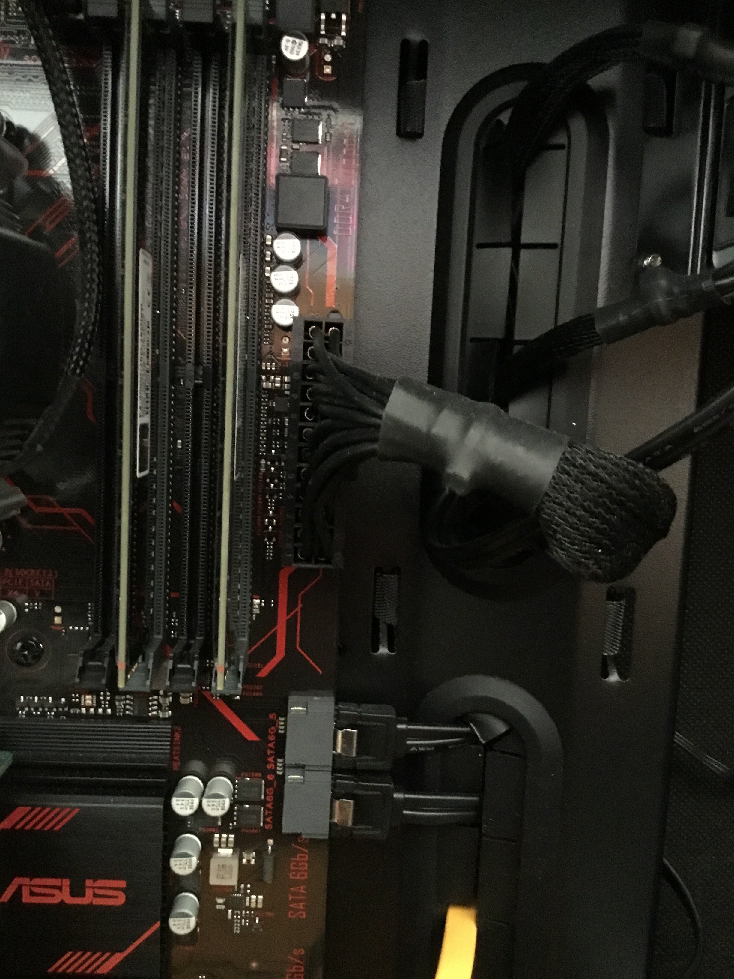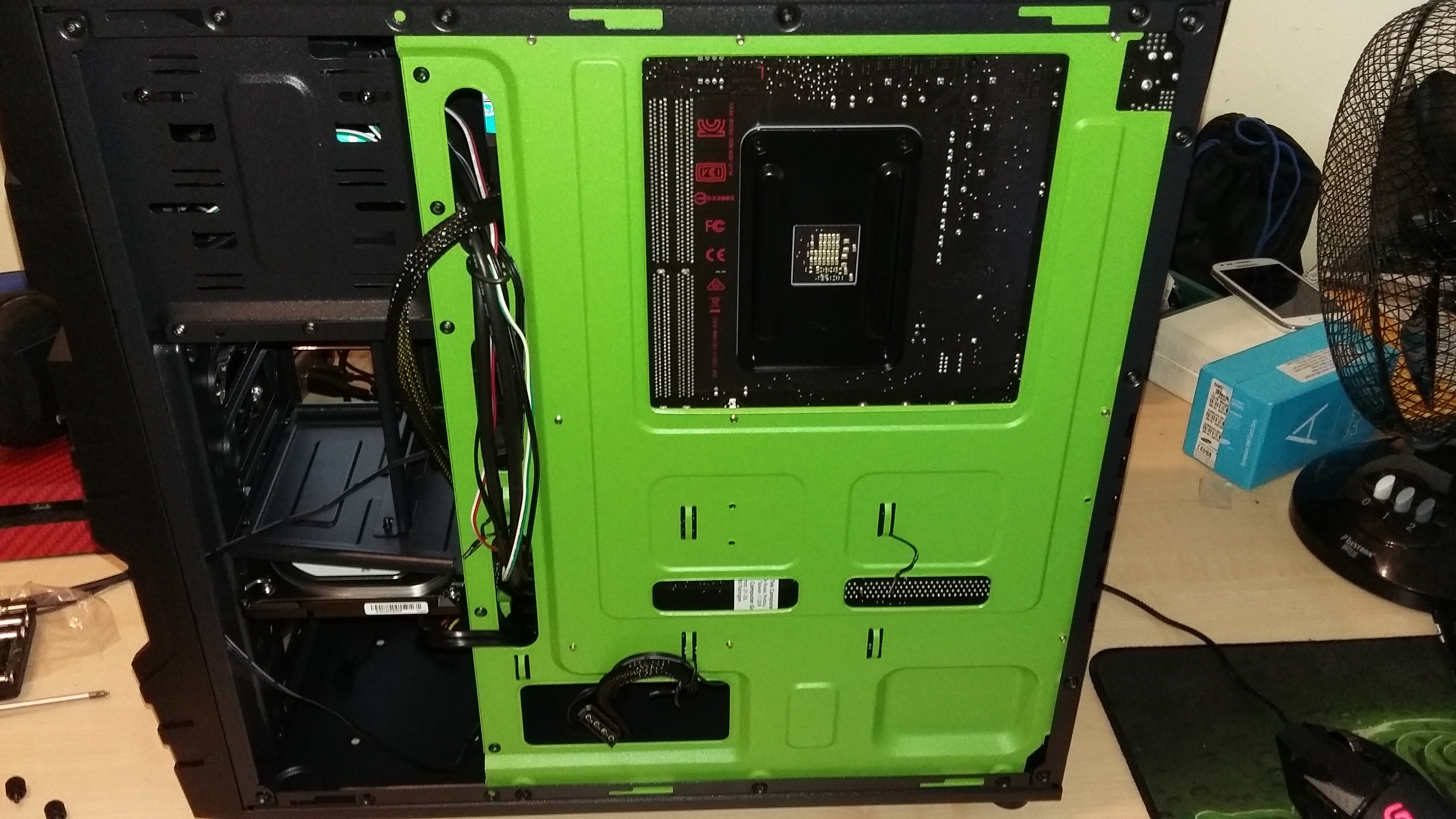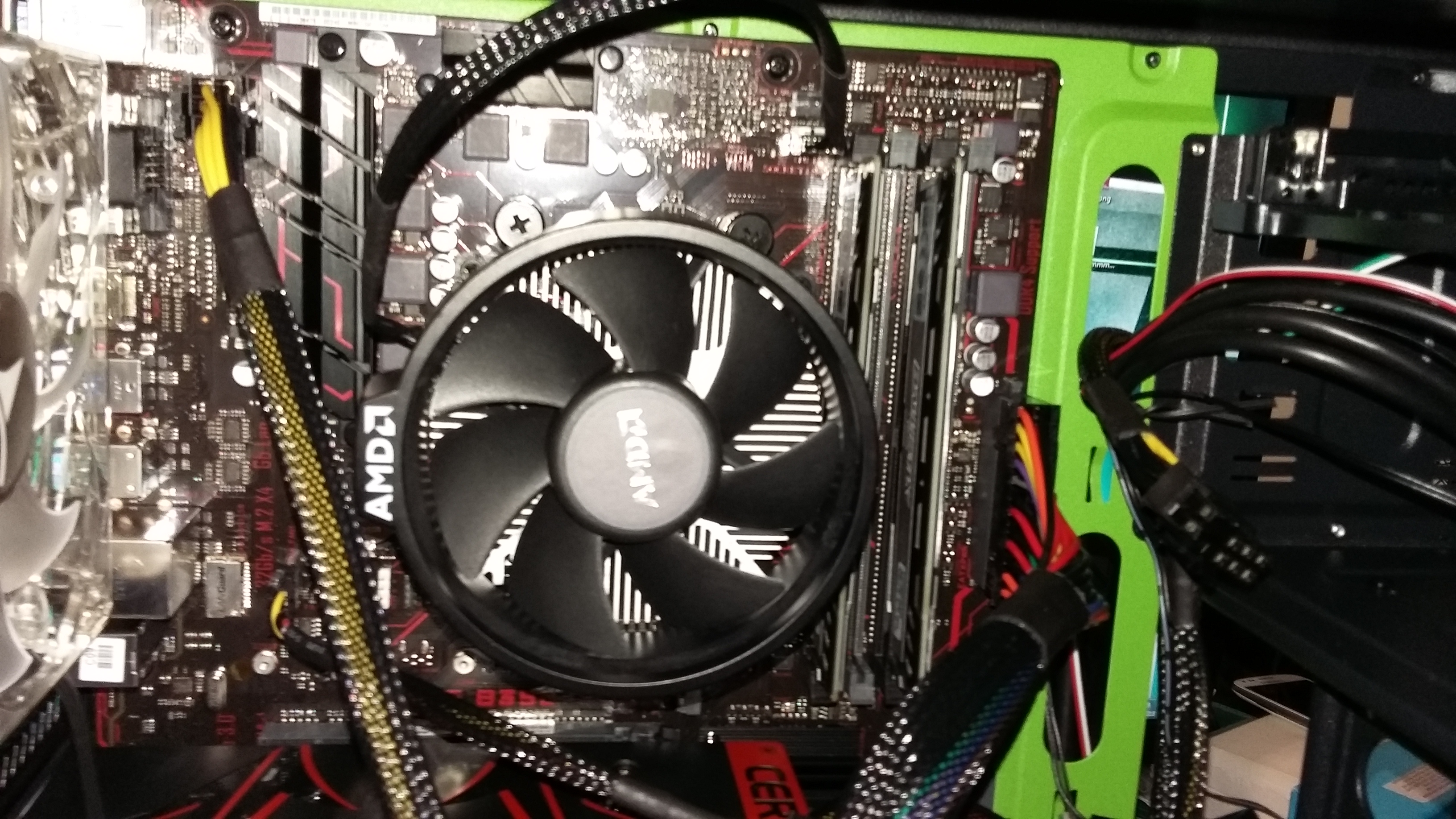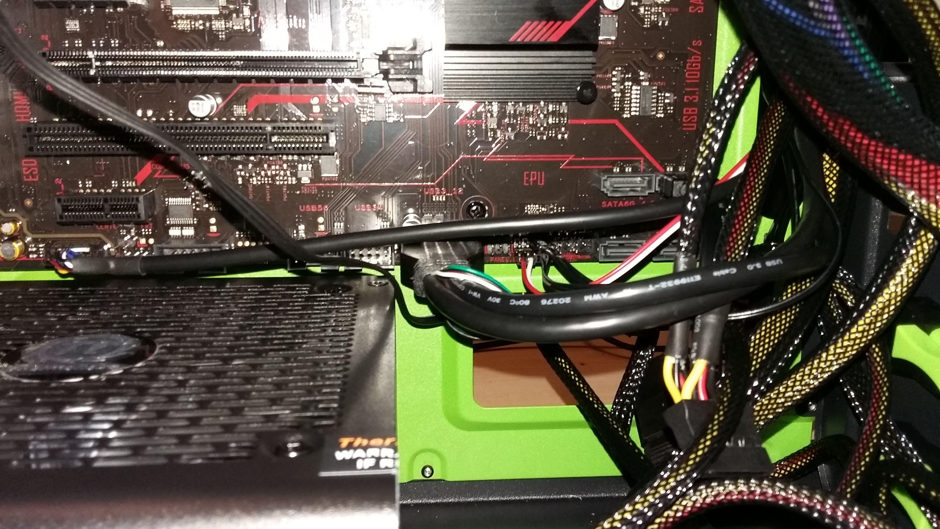 Was sich als Probleme herausstellen könnten wäre die Verkabelung, bei welcher ich mir nicht zu 100 % sicher bin, die Verschraubung der Abstandshalter des Mainboards (habe das Mainboard nur aufgesetzt), oder ein noch nicht angeschlossenes Kabel (Weiß, 2 Stecker), welches ich heute Abend noch mit dem Netzteil verbinden werde.