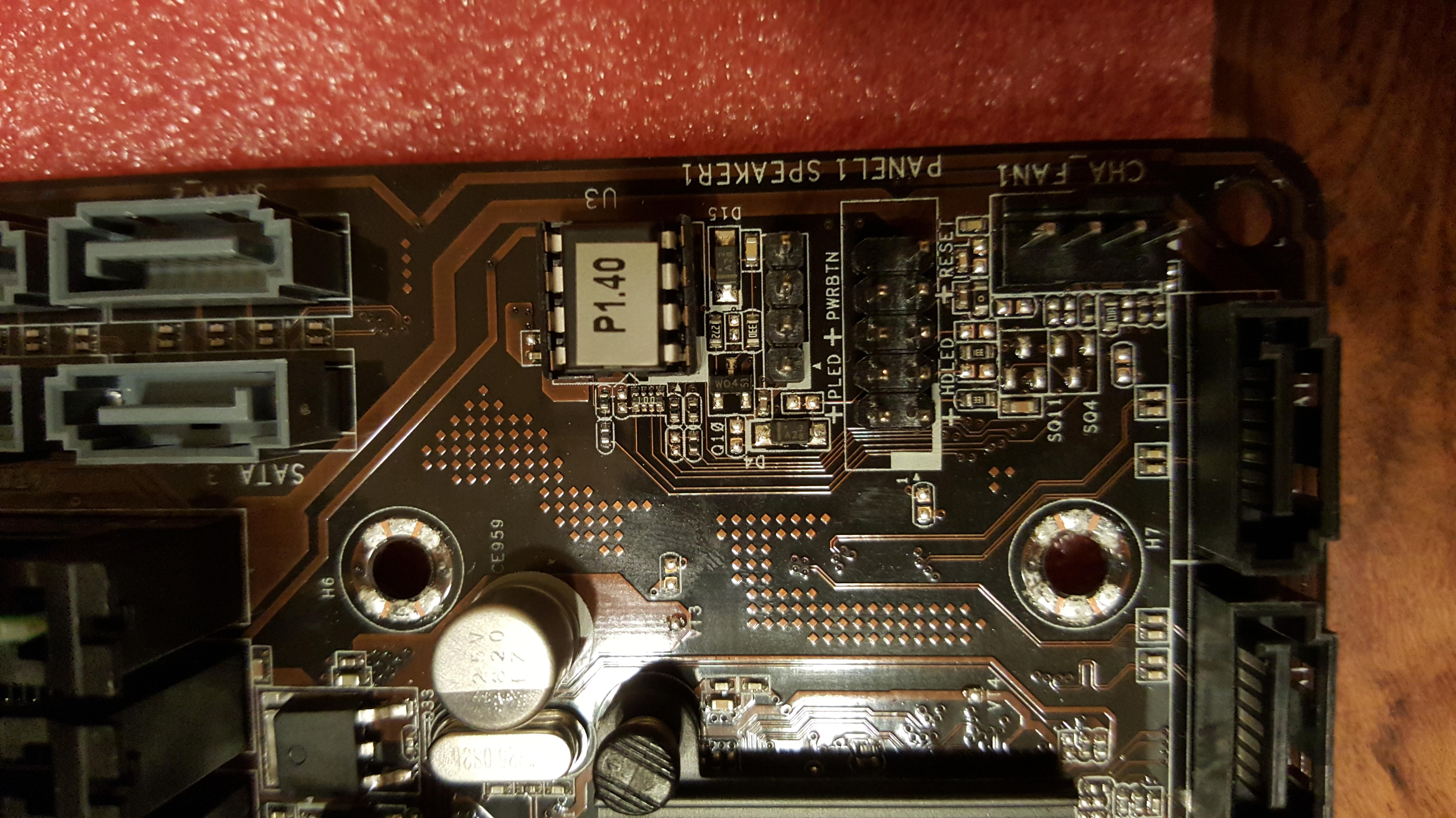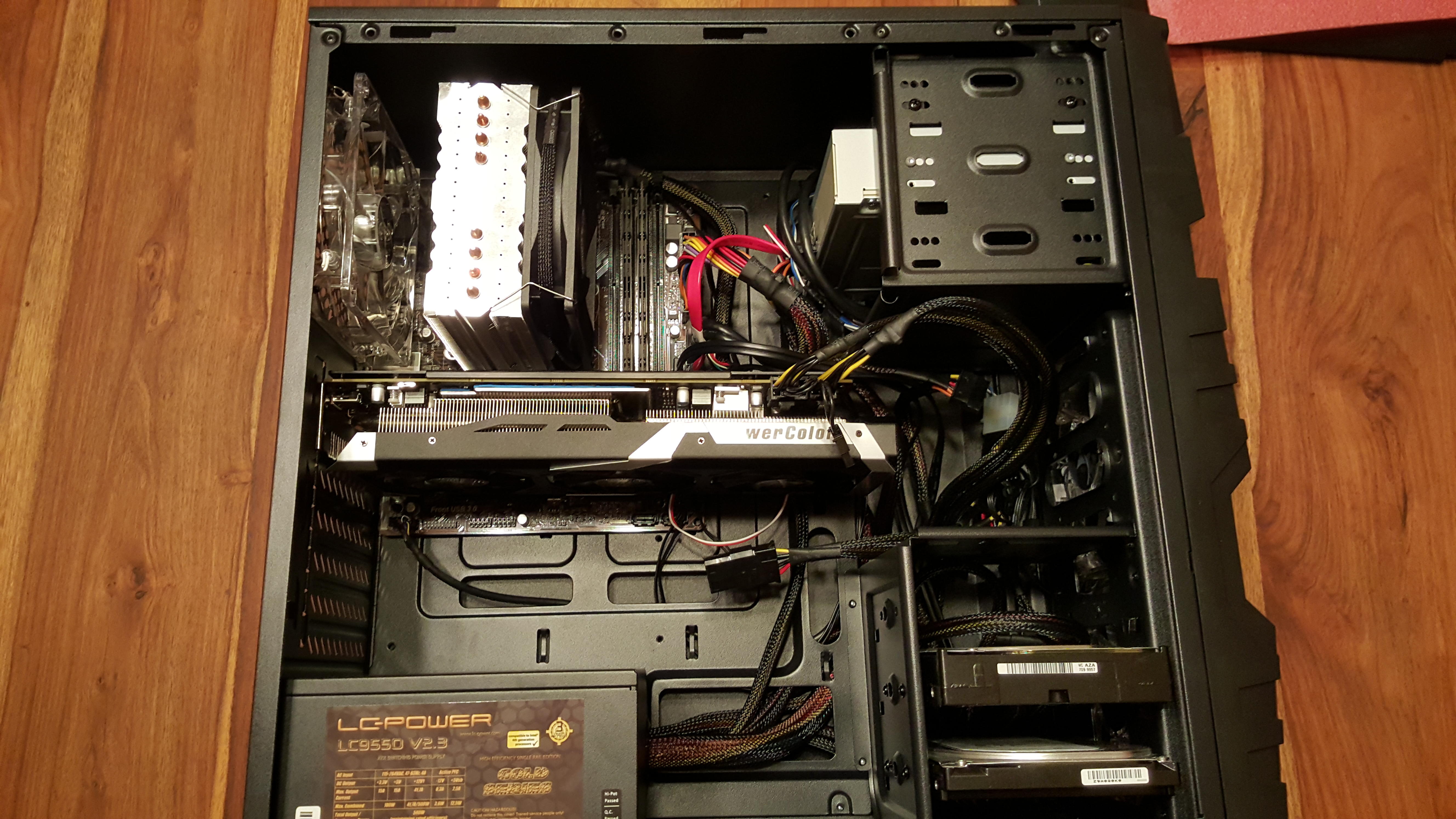 Mir ist aufgefallen, dass auf dem Hauptpanel des Mainboards, sprich wo bei mir Powerbutton, Reset und HDD LED angeschlossen werden, die Stecker mit meiner ziemlich großen Grafikkarte kollidieren. Die Stecker müssen leicht runtergedrückt werden, damit die Grafikkarte in den PCIe Slot passt. Habe die Kabel aus dem Hauptpanel auch mal entfernt und ohne sie den Pc probiert laufen zu lassen. Hat ebenfalls nicht mehr gebracht. Zusätzlich muss ich bemerken, dass ich ein einziges Teil nicht verbaut hab und zwar den Gehäuse Sound. Der passt auf Grund der GPU nicht aufs Mainboard. Aber daran sollte es nicht liegen oder?