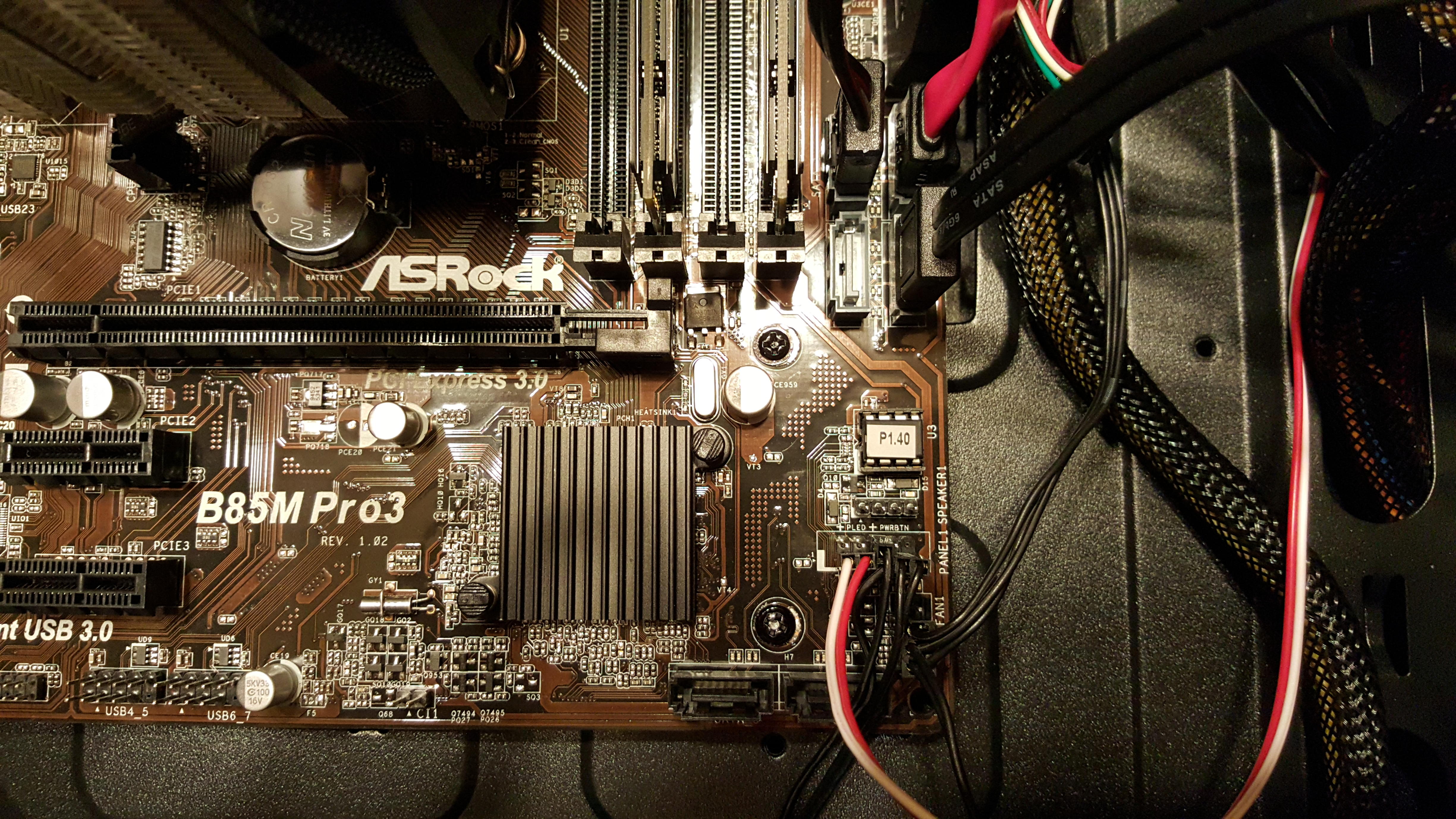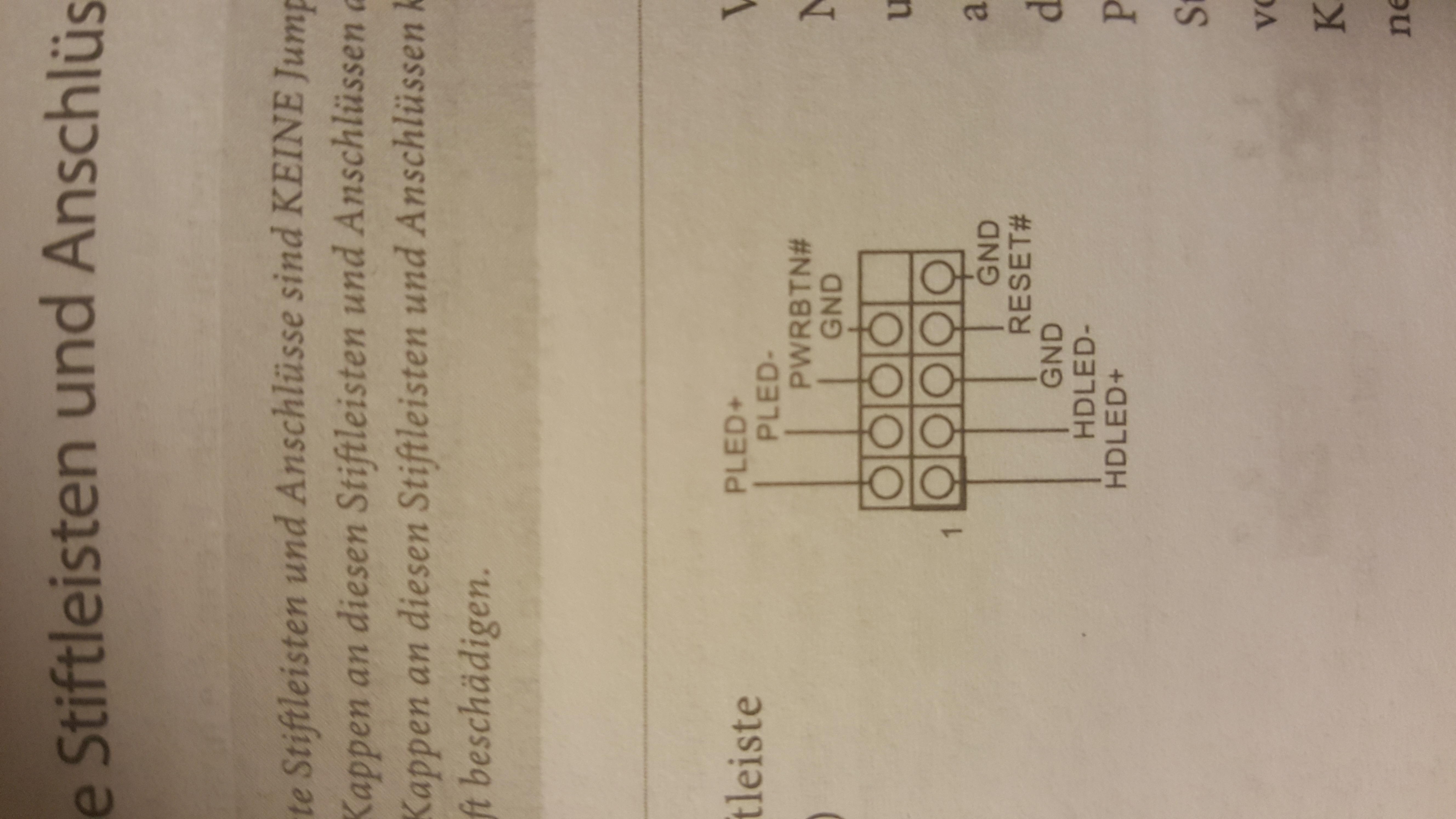 Meiner Meinung nach ist alles ordnungsgemäß angeschlossen. Ich habe mich auch versichert, dass alle Stecker auf dem Mainboard wie im Handbuch beschrieben eingesteckt sind. Ausserdem habe ich die Platzhalter, die nicht belegt sind, aus dem Gehäuse geschraubt (habe gelesen, dass das stören kann). Ausserdem habe ich den Arbeitsspeicher in unterschiedlichen Varianten (nach Mainboard-Anleitung) ins Mainboard gesteckt und probiert. Kein Ergebnis..