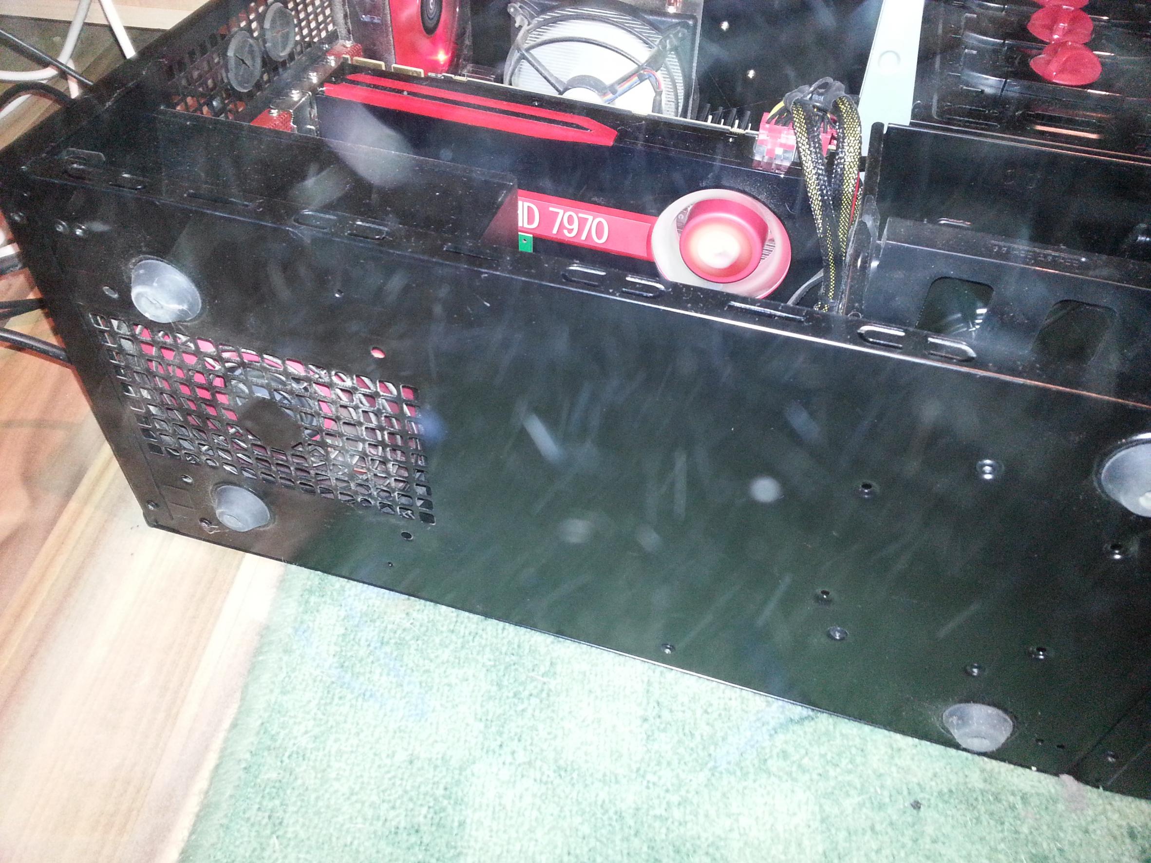 Jetzt wenn die Grafikkarte noch arbeitet kann das schon zum trotteln (runtertakten) des Prozessors führen (bei dem schlechtem Airflow)