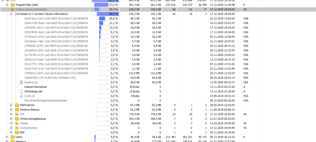 Bei WizTree wird die datei als "System Volume Information" angezeigt, außerdem scheint die datei mit jedem scan ein paar gb kleiner zu werden(falls das weiter hilft)