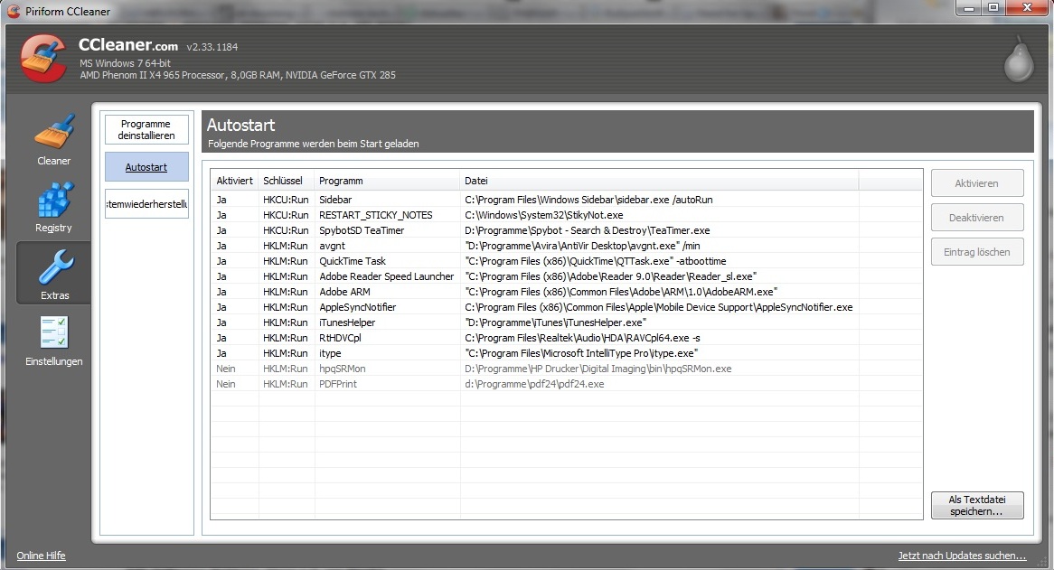 Was den Autostart angeht kannst du den Applemist und das Adobezeugs ruhig entfernen.