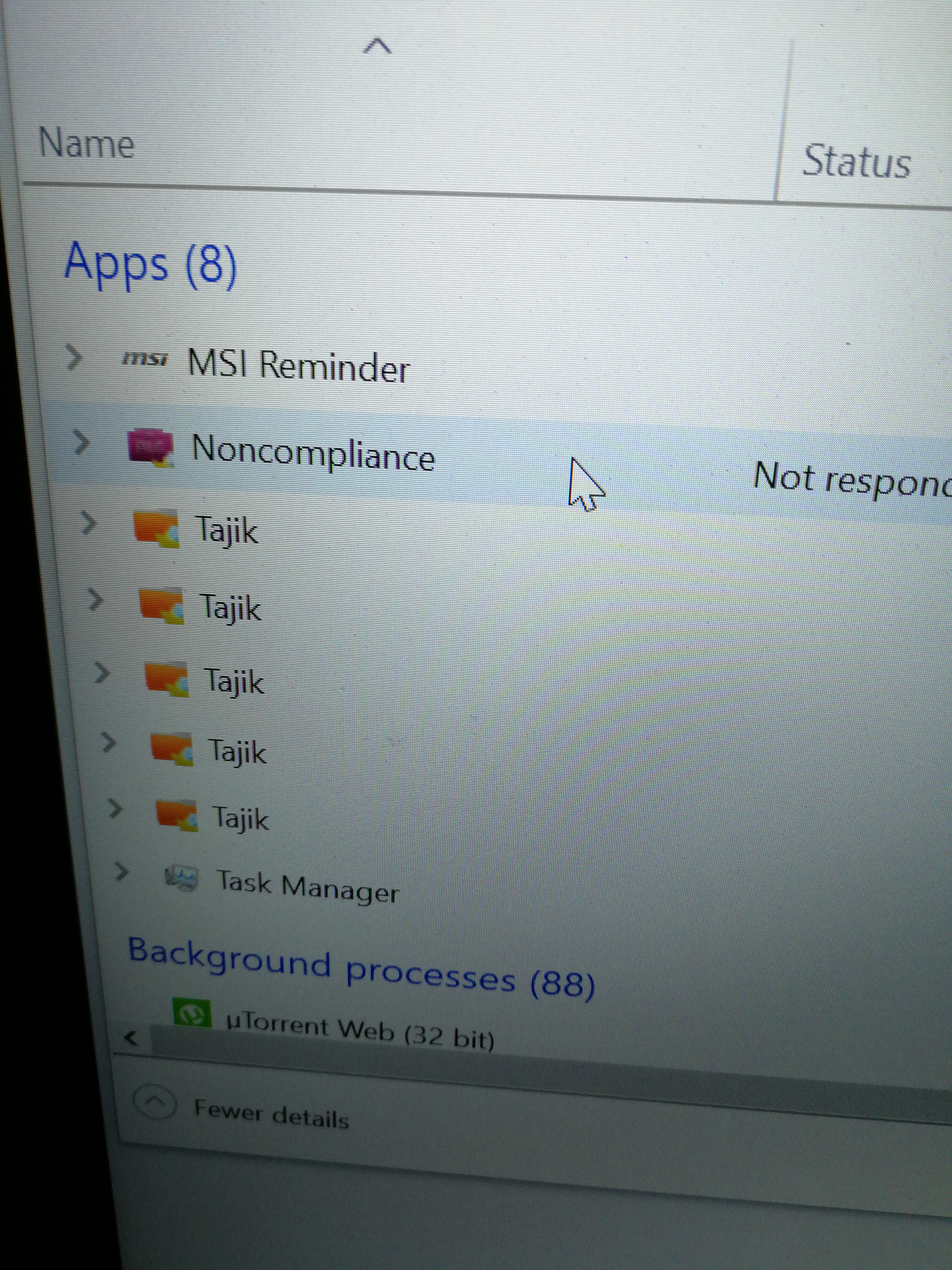 Seit gestern Abend, befinden sich auf meinem Rechner zwei dubiose Programm in einem Ordner welchen ich nicht sehen kann. Auserdem, starten diese zwei Programm von all eine, auch das entfernen dieser bringt nichts da sie sich selber wieder installieren. Zeitweillig, fangt auch Ein Werbespot an zu reden obwohl alle browser geschlossen sind. Im Taskmanager erscheint Ein Programm das "Tajik" heisst und eines names "Noncompliance" Sie sind in einem Ordner Der sich "Chairmanship" nennt... Habe Bilder angehaengt. Vielleicht weiss jemand von euch Wie ich das wegbekomme
