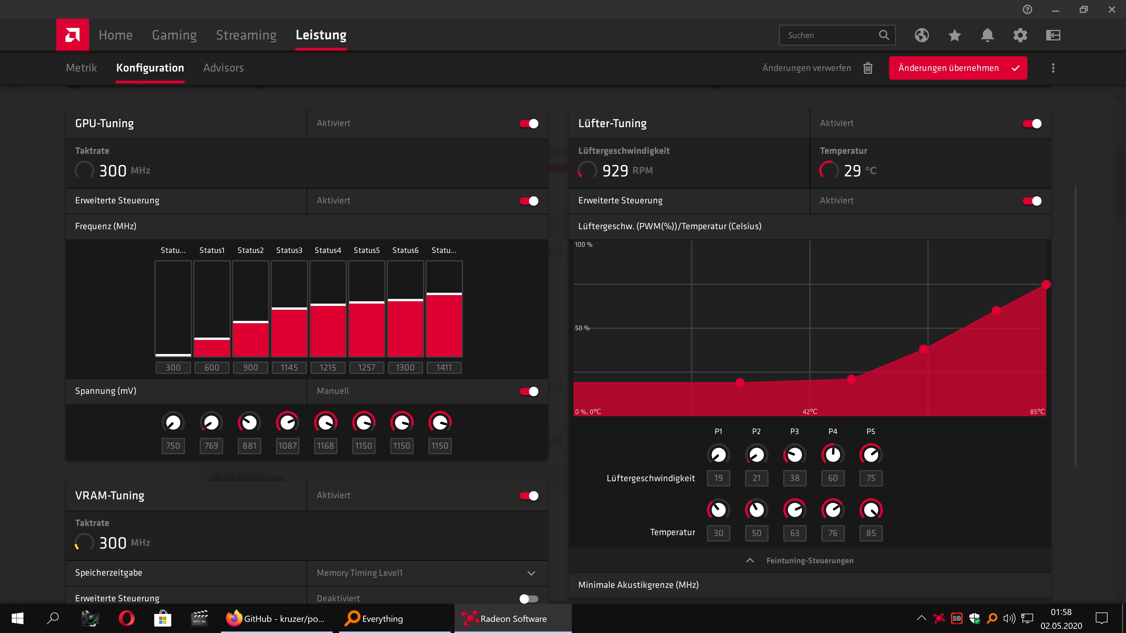 Dazu habe ich die Lüfterkurve so angepasst, dass es kein Fön mehr war.