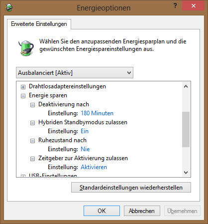 ich habe hier zwei PC mit Win8 Pro bestückt (zuvor Win7). Seit Win8 legen beide ein seltsames Energiesparverhalten an den Tag.